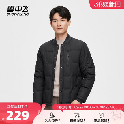 雪中飞秋冬新款轻薄男士简约休闲保暖舒适短款立领羽绒服