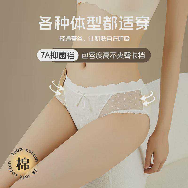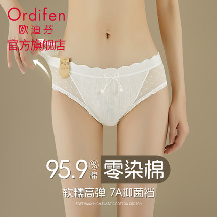 欧迪芬内裤女纯棉全棉裆低腰纯欲白色蕾丝少女生短裤无痕夏季薄款