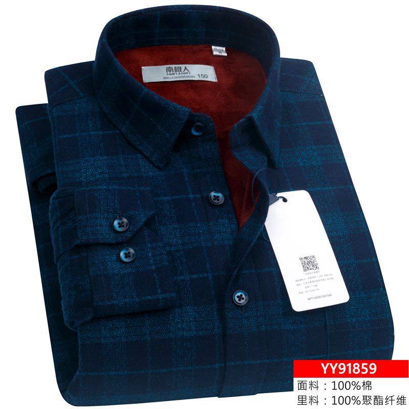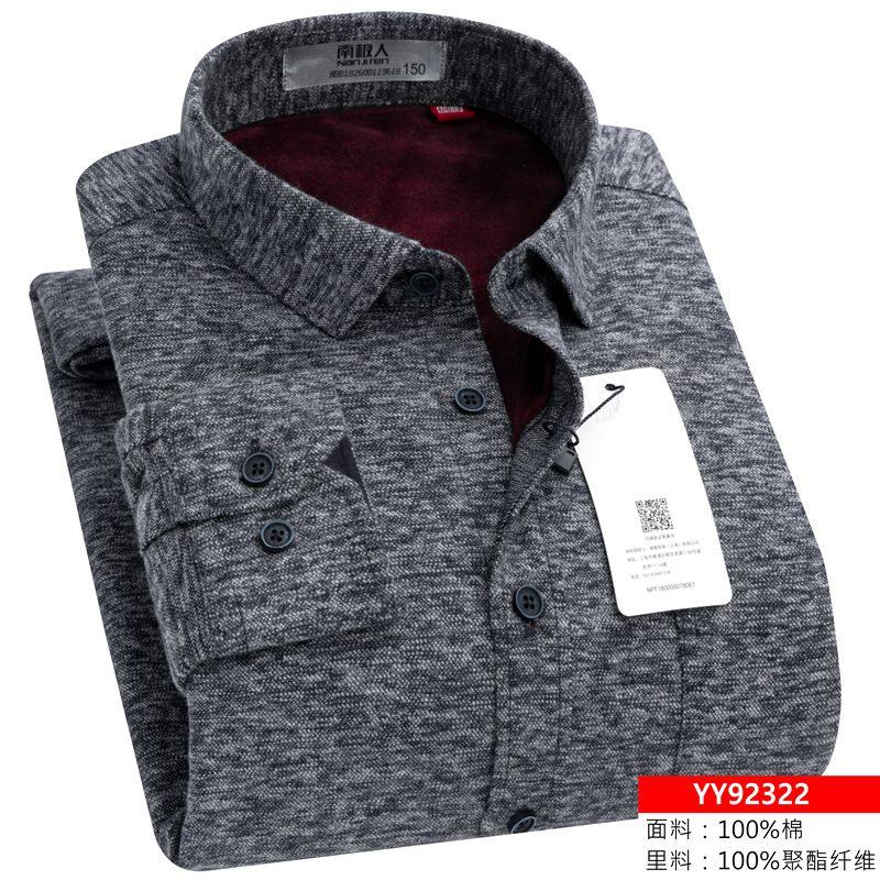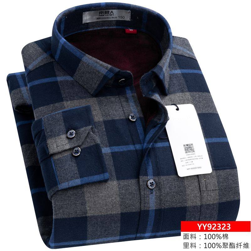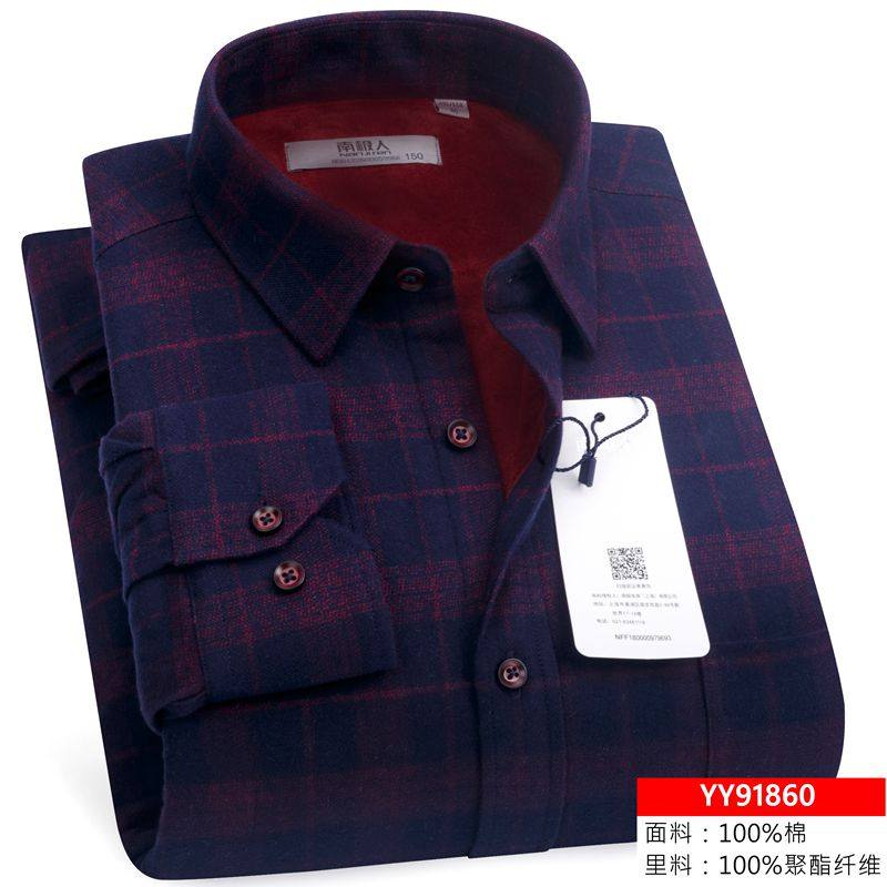 南极人纯棉磨毛保暖衬衫男红格子商务休闲冬季中老年加绒加厚衬衣