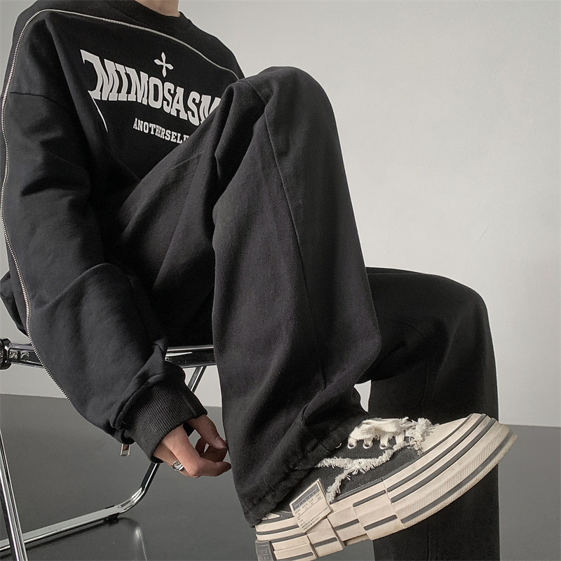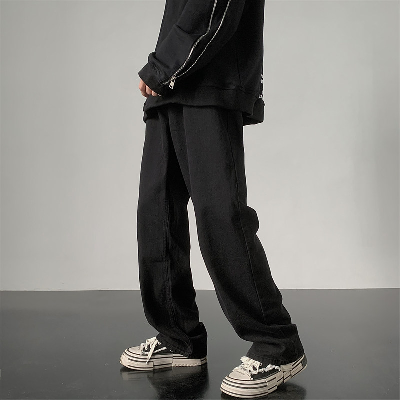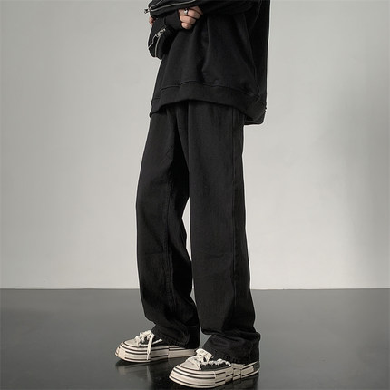 直筒拖地黑色牛仔长裤男士韩版宽松ins潮青少年老爹裤垂坠感阔腿