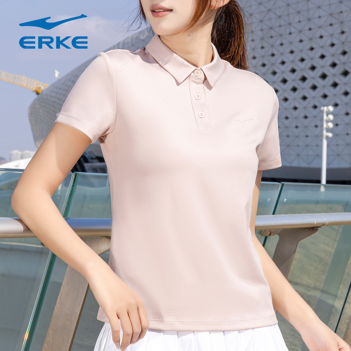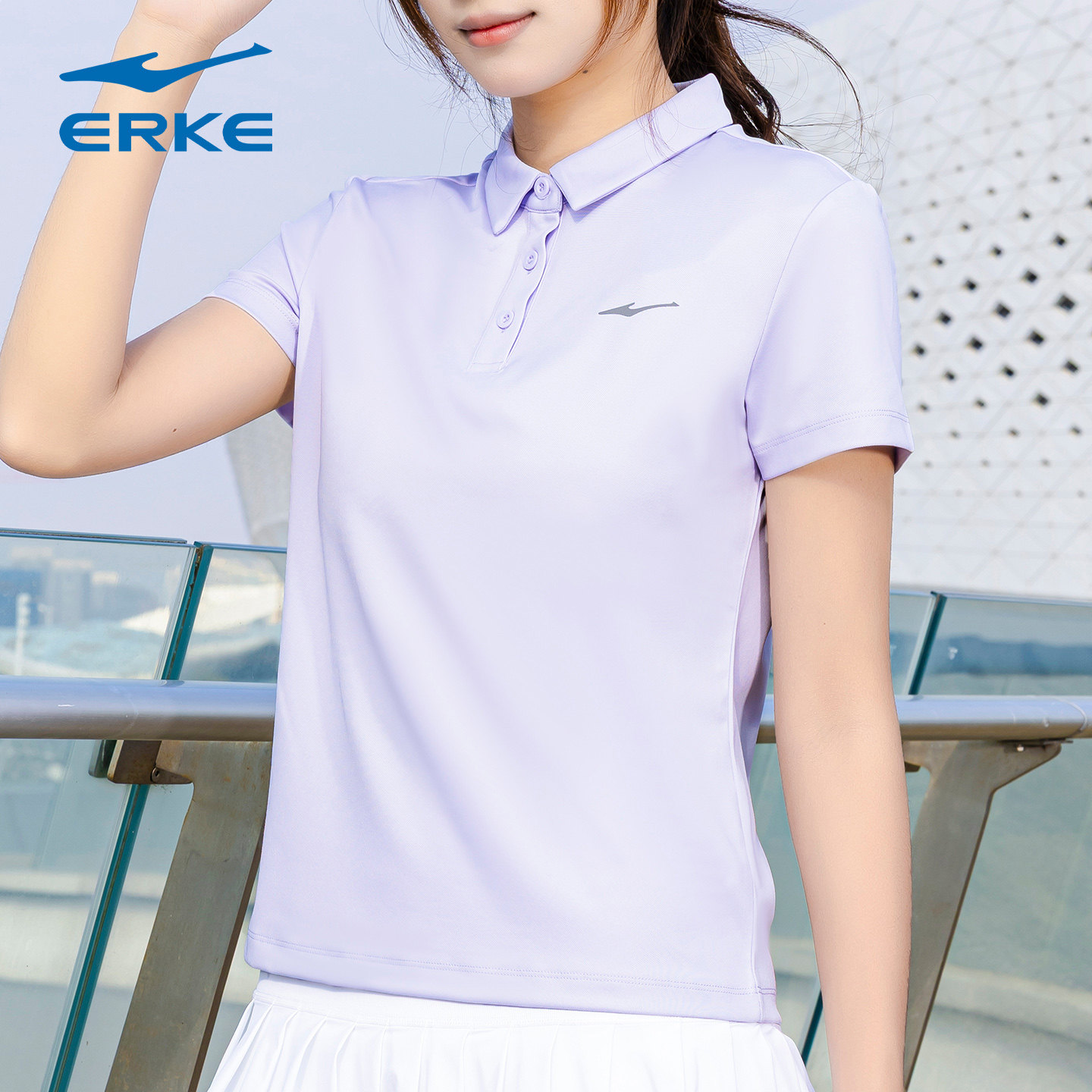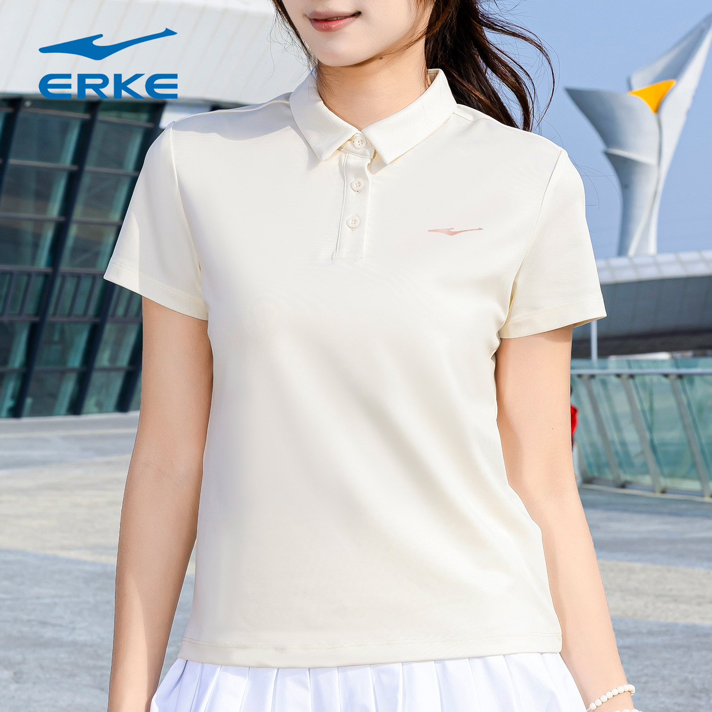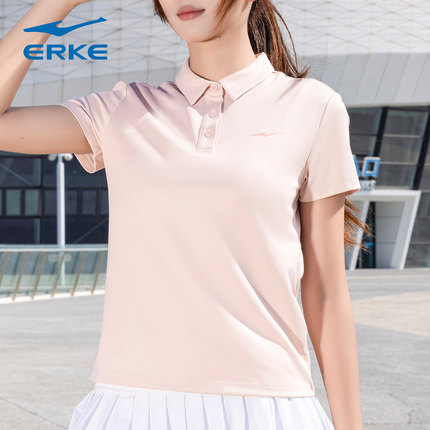 鸿星尔克女子运动短袖网球polo衫夏季新款透气速干衣休闲翻领T恤