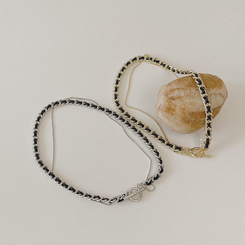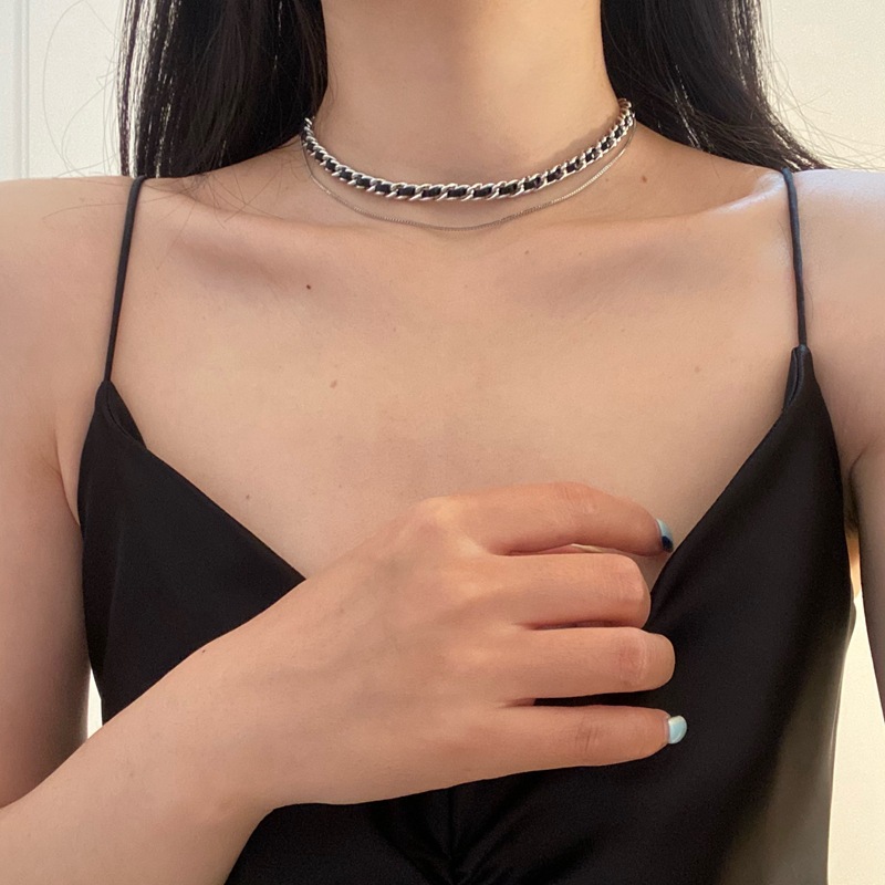 韩国2021新款PU皮质双层项链复古简约气质百搭锁骨链颈链OT扣ins