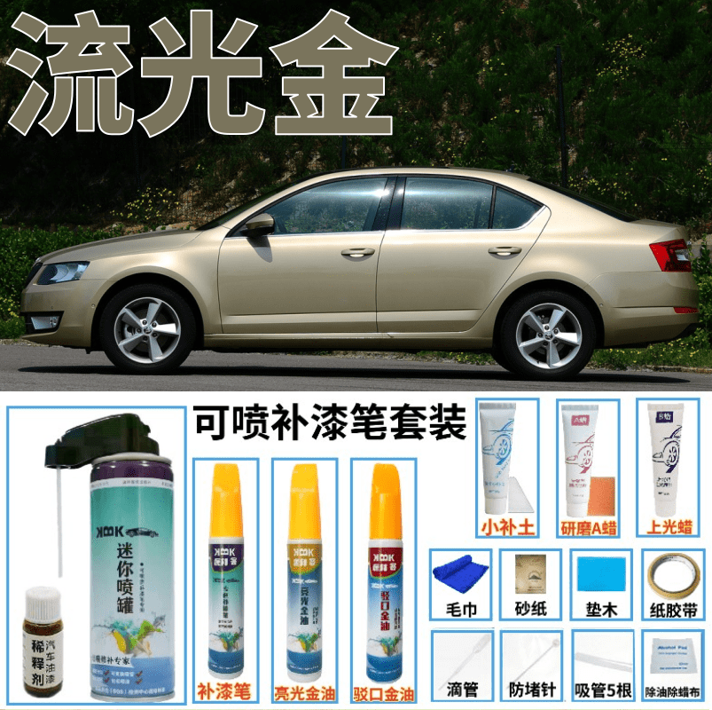 斯柯达明锐补漆笔流光金汽车划痕修复自喷漆金色点漆笔原厂香槟金