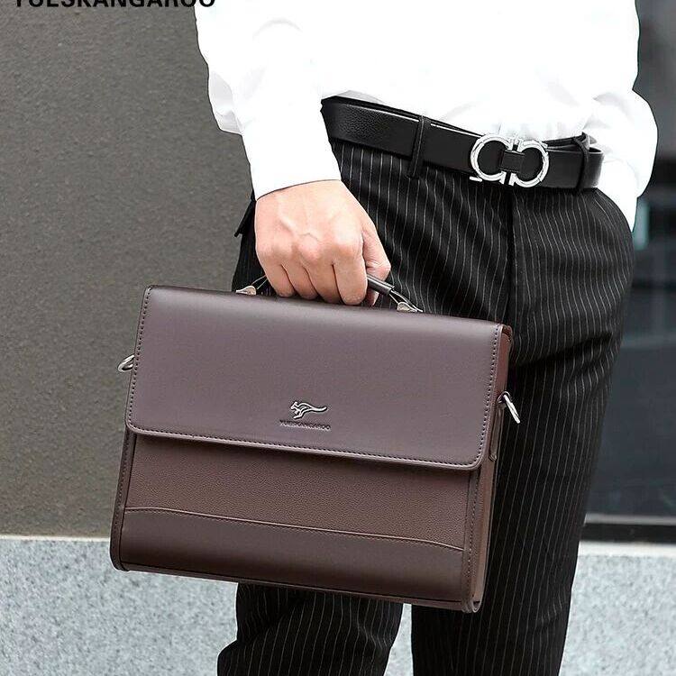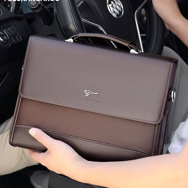 麦克袋鼠牛皮公文包男2025新款真皮小手提包商务休闲单肩斜挂背包