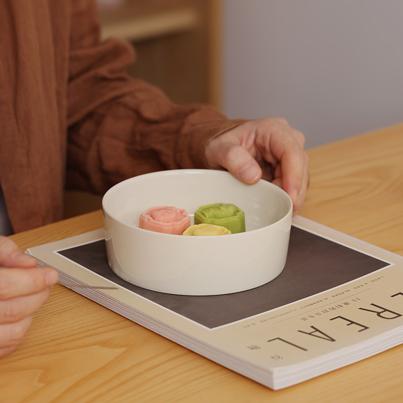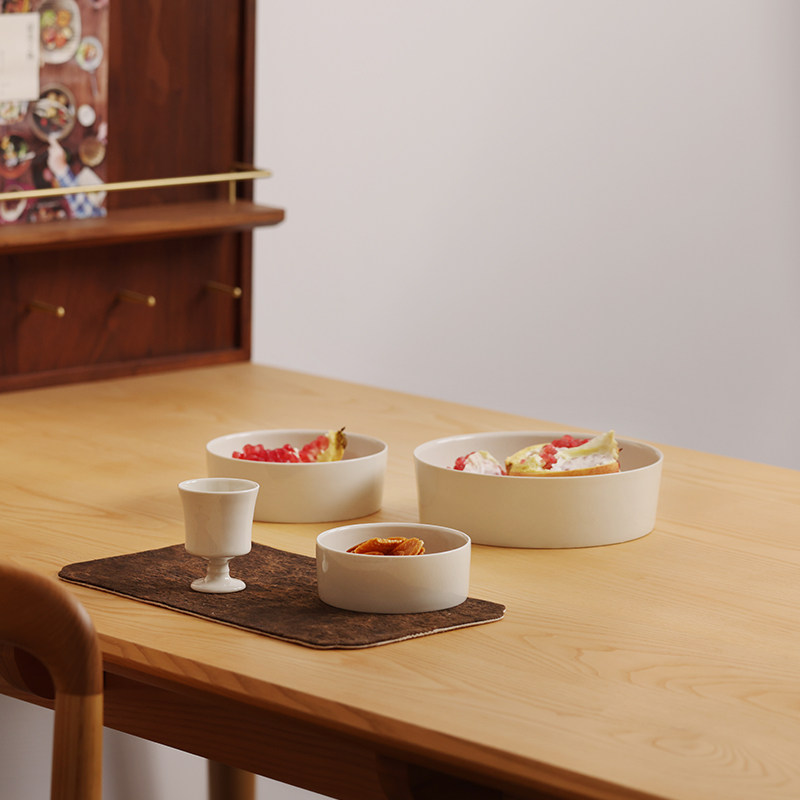 田园风圆形陶瓷深盘日式纯色手工菜盘客厅茶几果盘茶席点心盘南昔