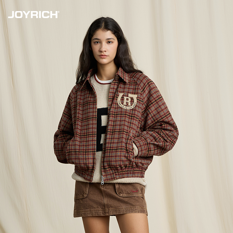 JOYRICH美式复古经典格纹休闲翻领底特律夹克外套春秋季男女同款