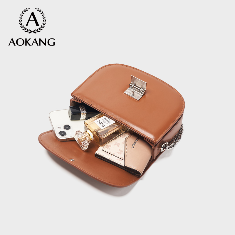 奥康马鞍包2025新款女包潮小方包小众质感斜挎包包女真皮单肩包包