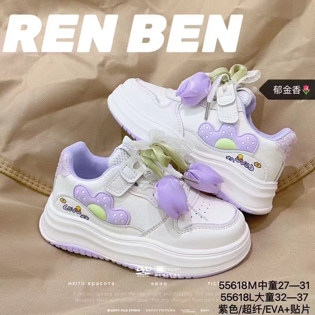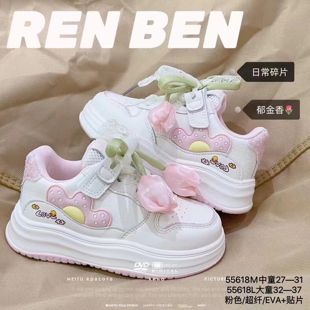 人本2025春秋新款厚底小白鞋女童百搭休闲运动鞋透气板鞋55618