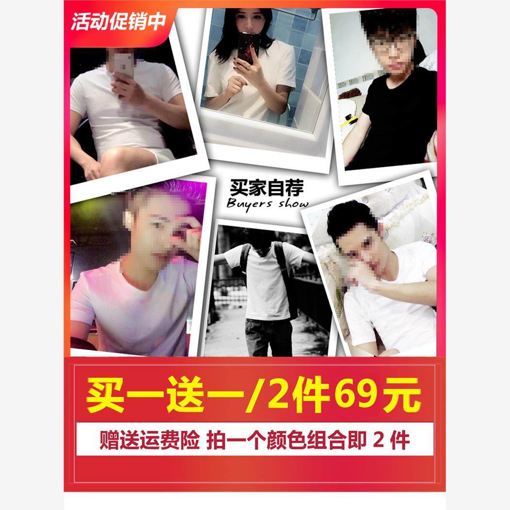 短袖T恤男士鸡心v领纯白色体恤血衣服纯棉修身长袖汗衫纯色打底衫