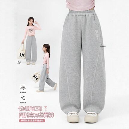 女童裤子春秋2025新款女大童休闲弯刀阔腿裤儿童秋季直筒运动卫裤