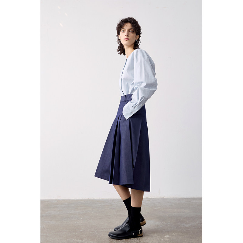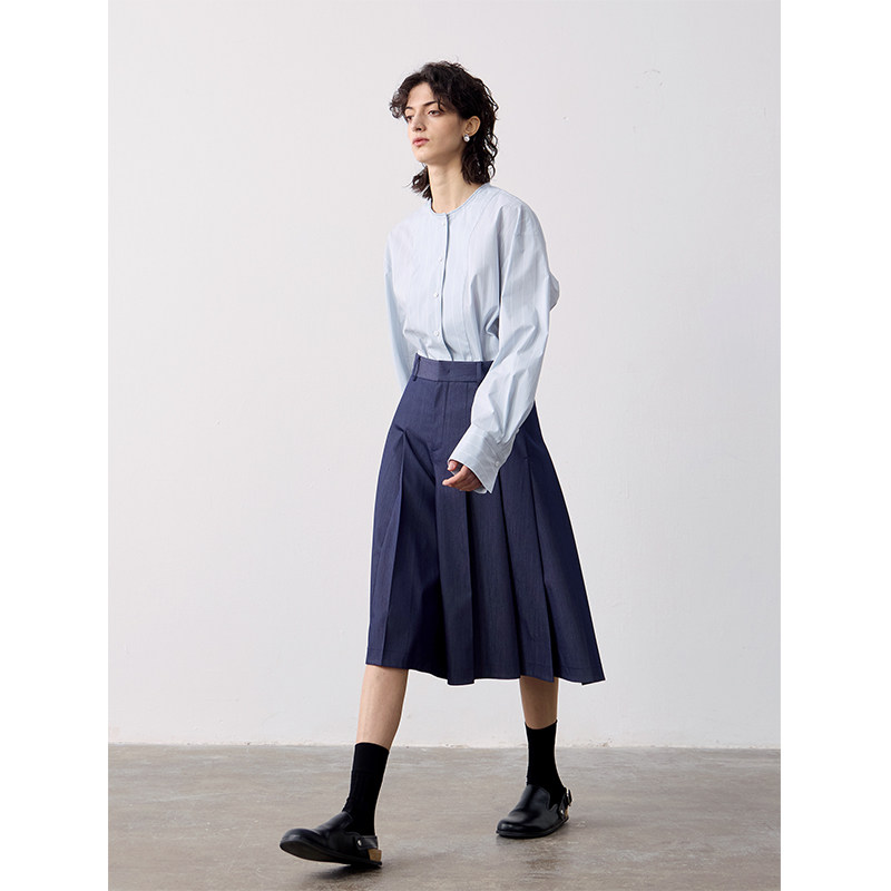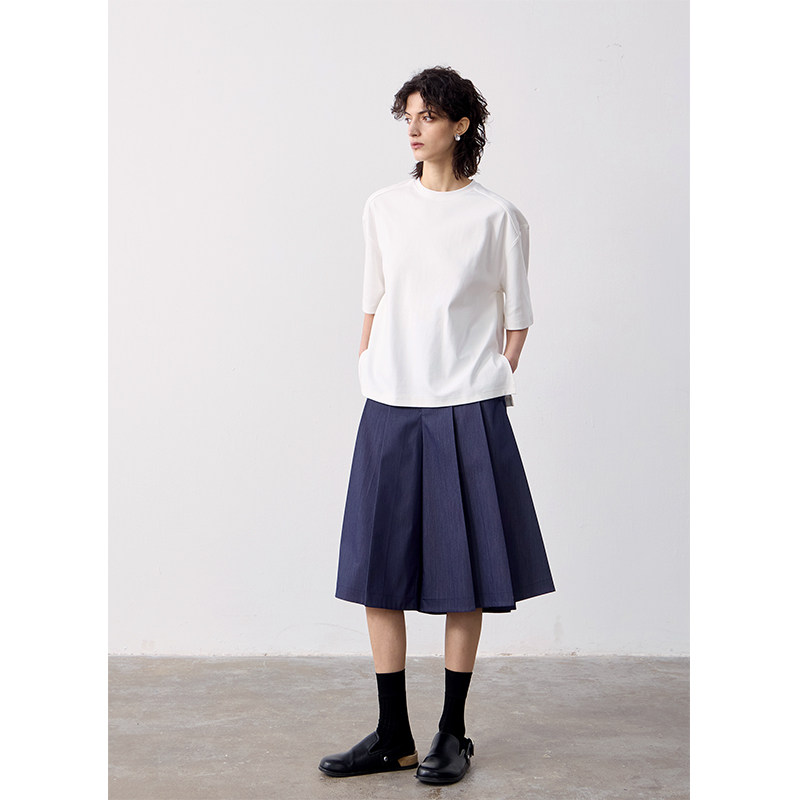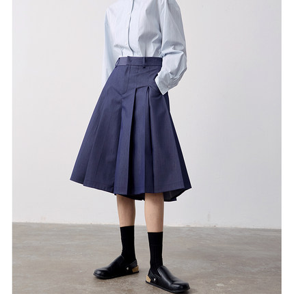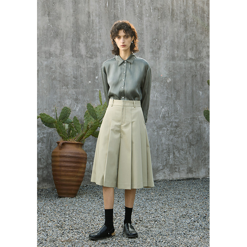 MeeLeeMeeLab 原创绅士优雅凉感醋酸挺括A型百褶裙裤中裤 春夏