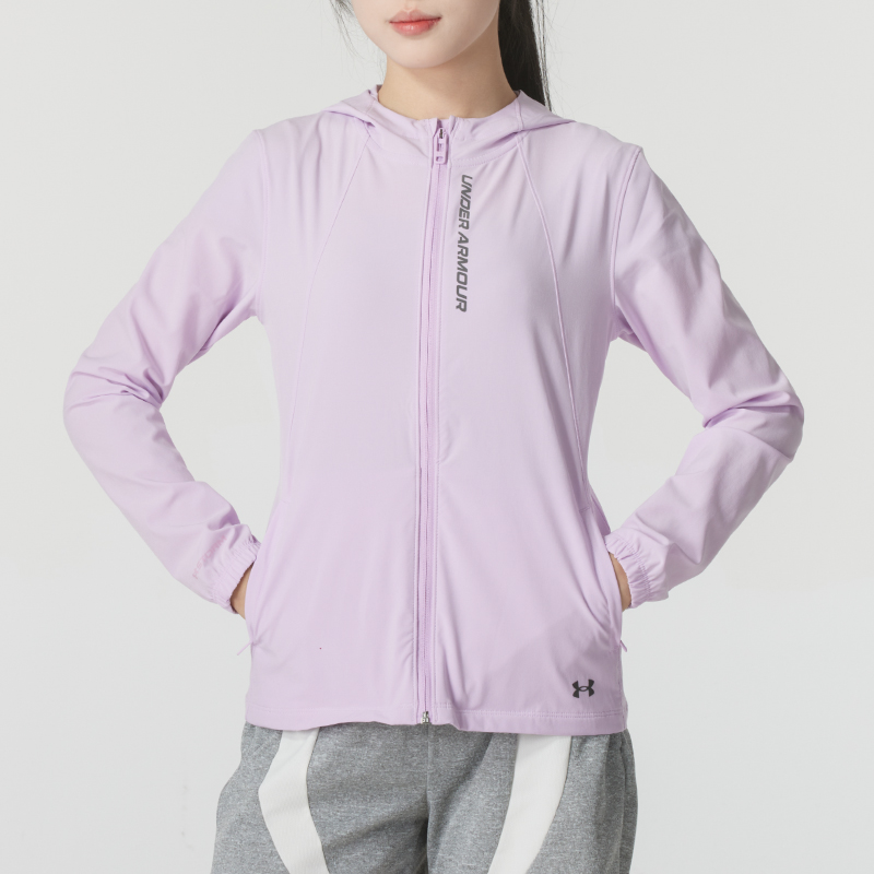 UA安德玛外套女装秋季跑步运动服高弹瑜伽服修身薄款连帽开衫夹克