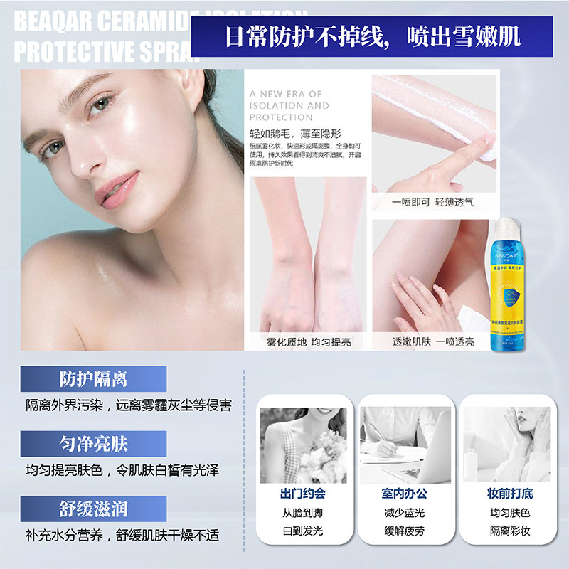 特价贝泉神经酰胺隔离防护喷雾150ml补水保湿提亮肤色身体素颜霜