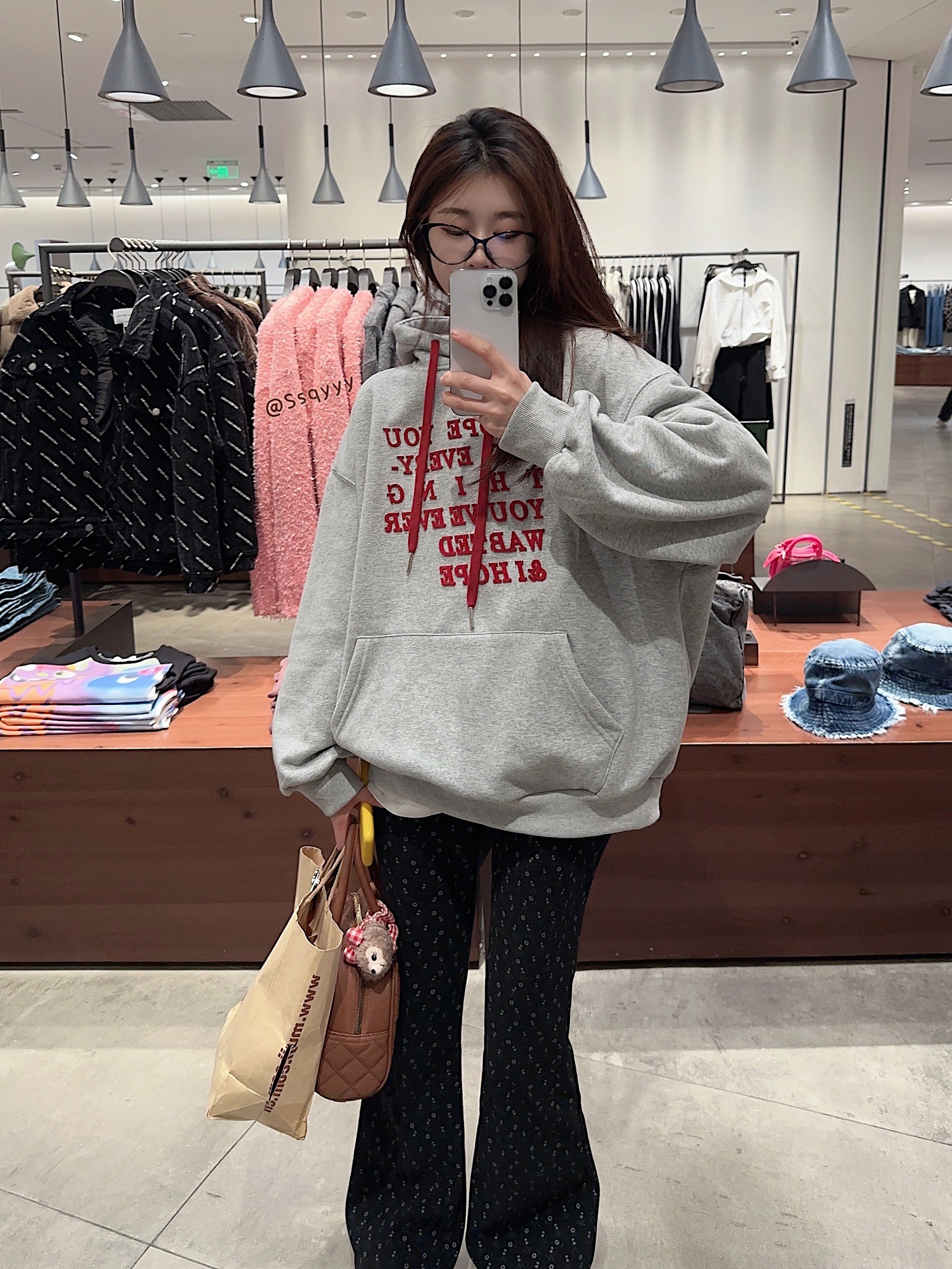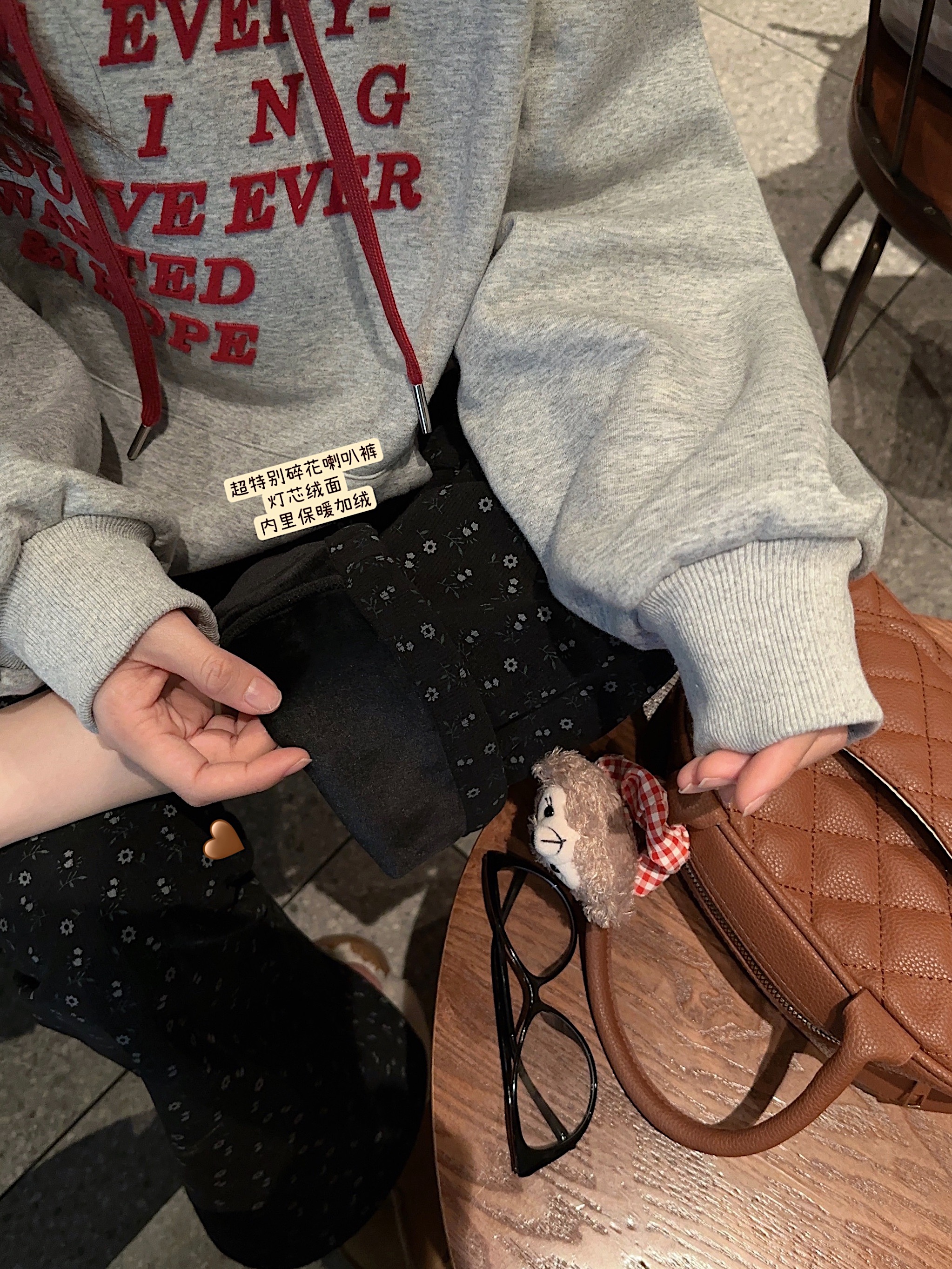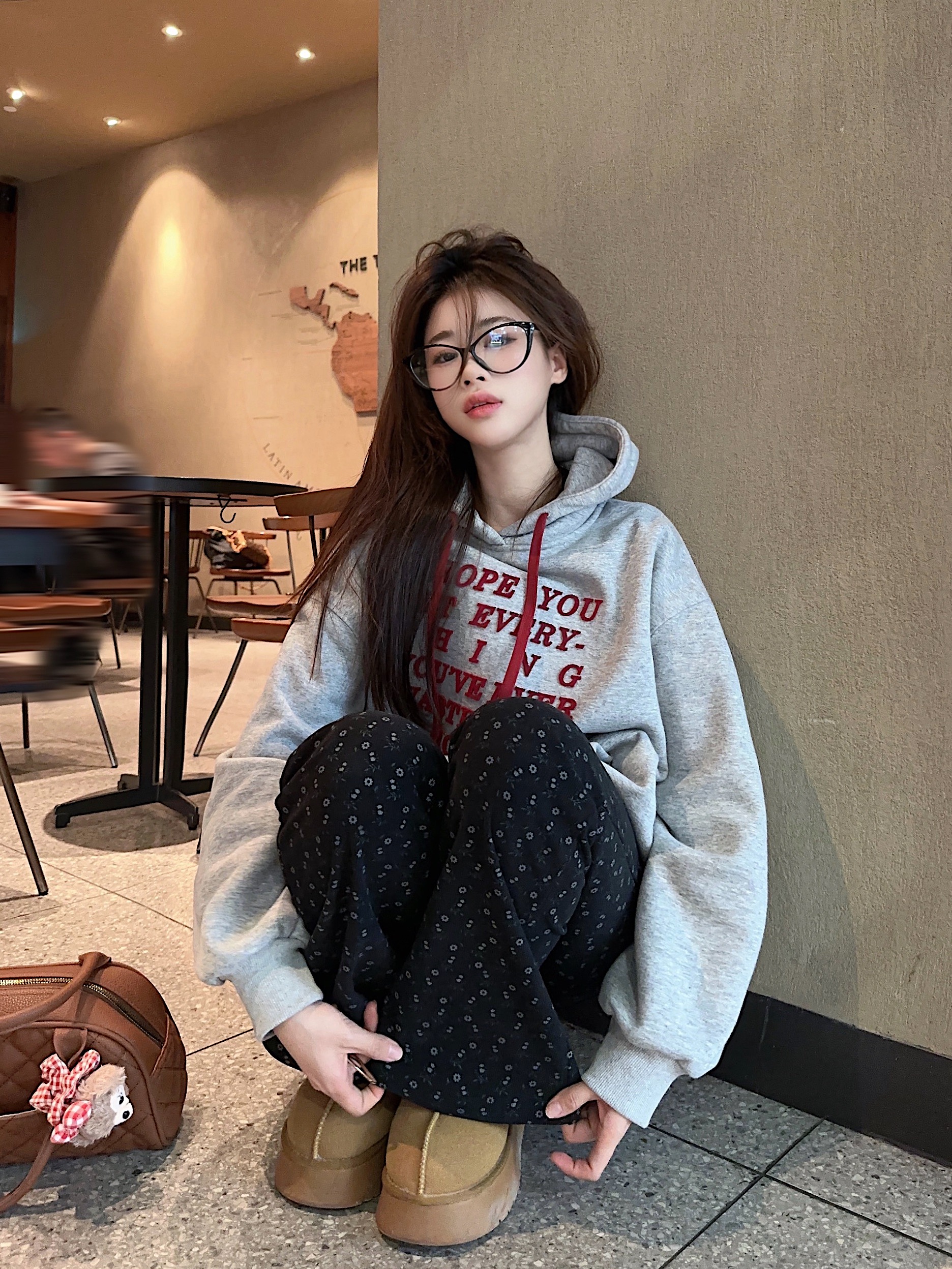 加绒连帽美式卫衣外套女秋冬设计感小众字母印花慵懒宽松加厚上衣