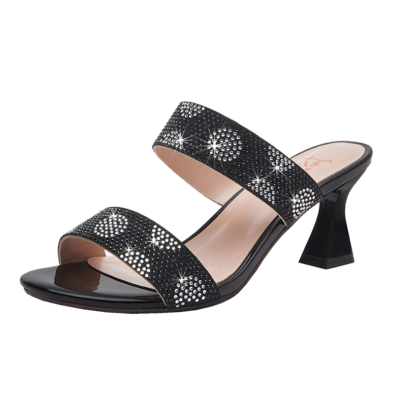 2025新品夏季高跟女凉鞋时尚水钻气质女凉拖外出穿拖鞋女一字凉鞋