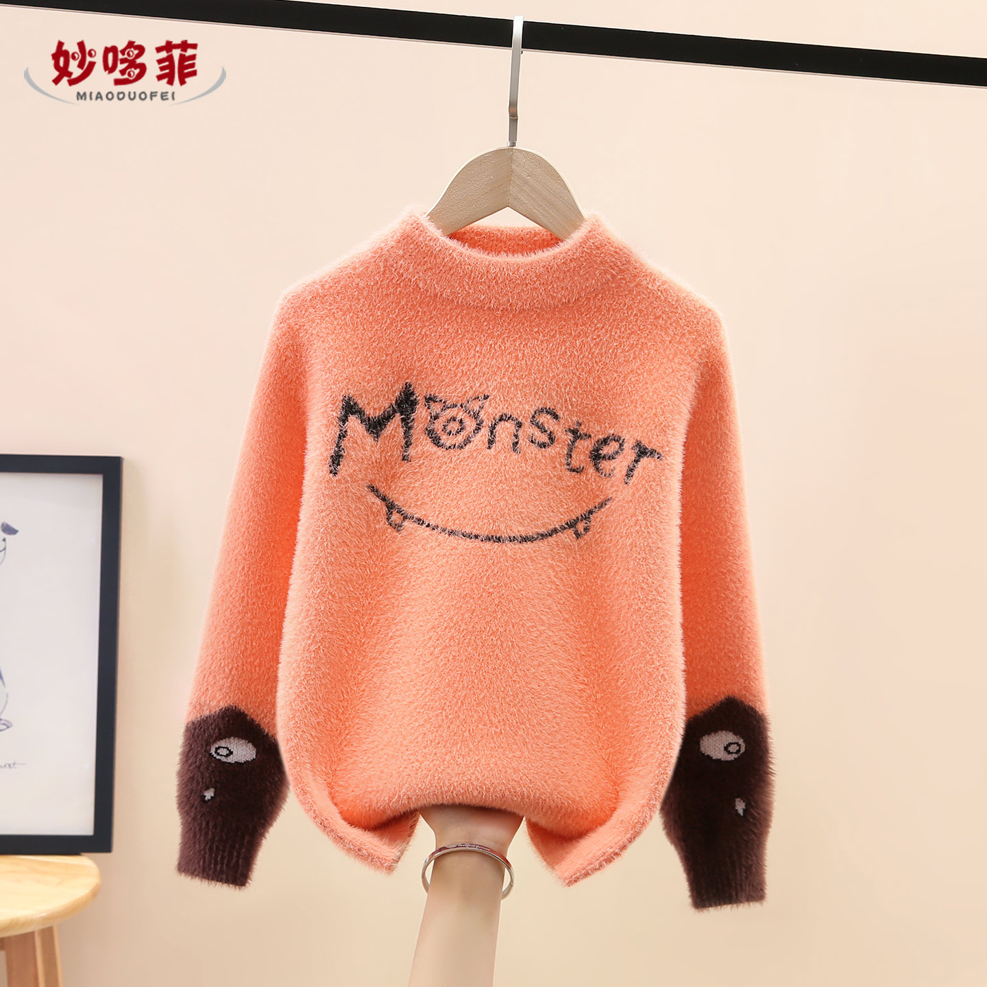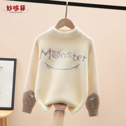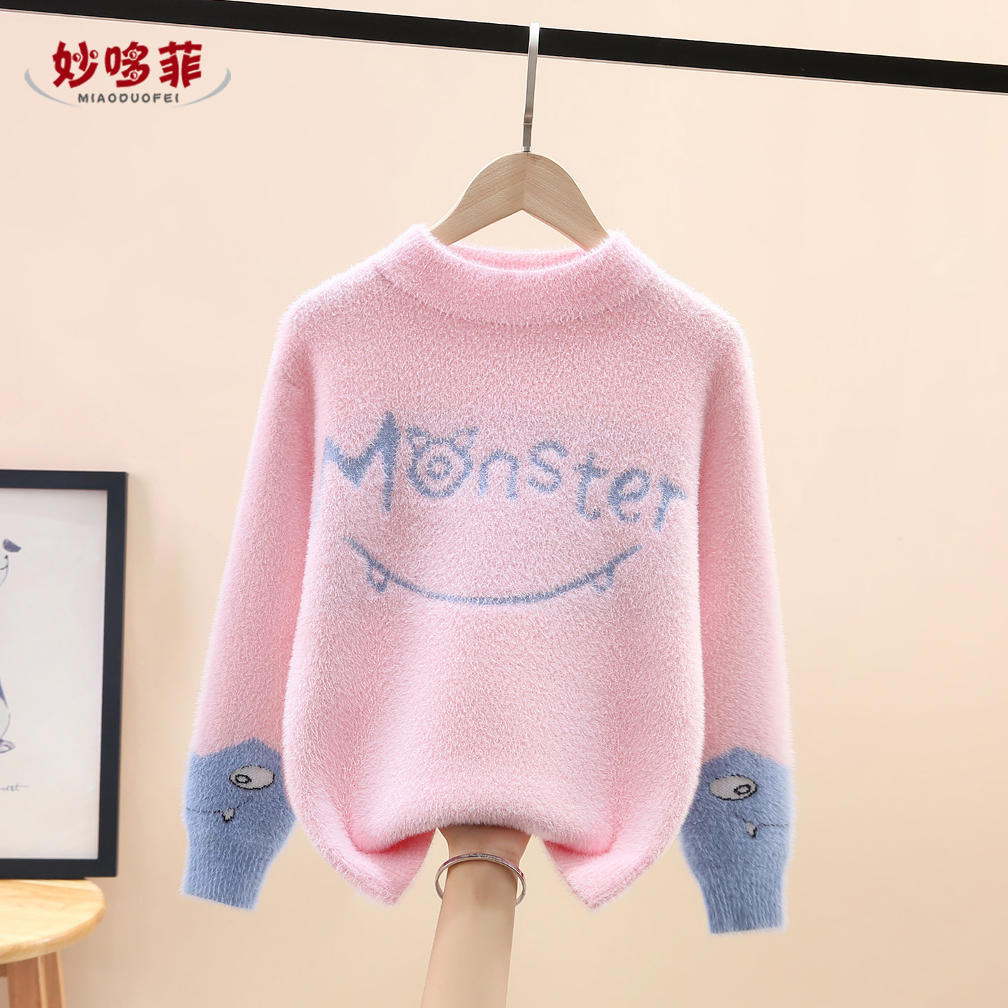 女童毛衣冬季加厚加绒2025新款水貂绒儿童针织内搭女孩洋气中大童