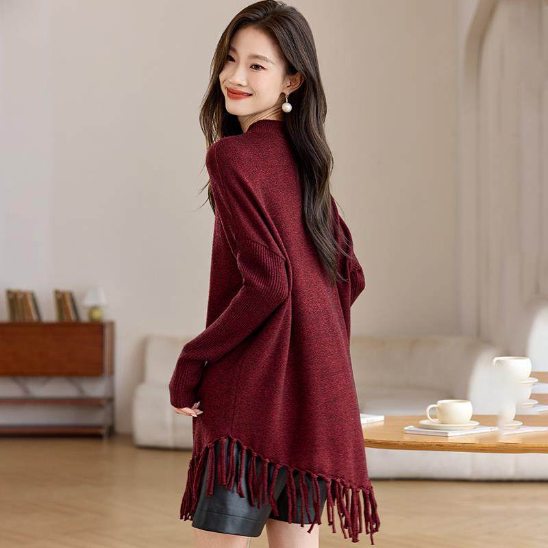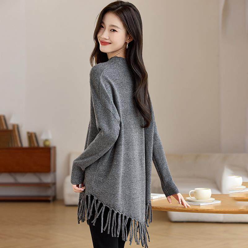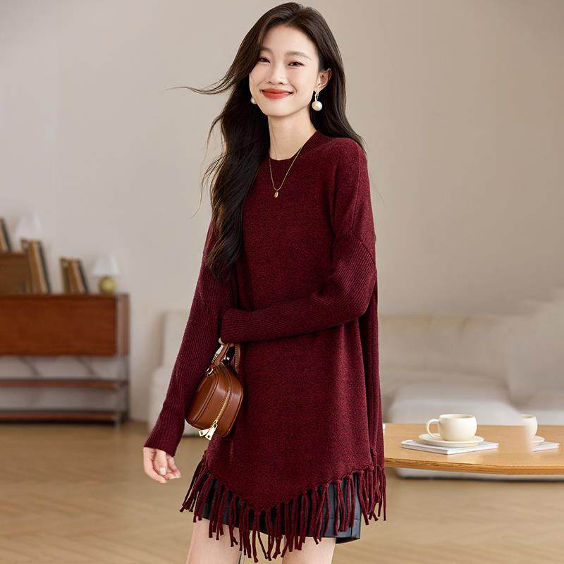 高端漂亮毛衣裙女2024新款秋冬流苏罩衫中长款大码气质打底羊毛衫