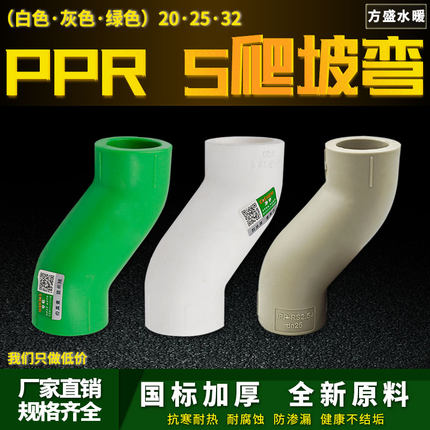 PPR顺水弯头S爬坡弯大弯大流量管件20 4分25PPR水管管材管件配件