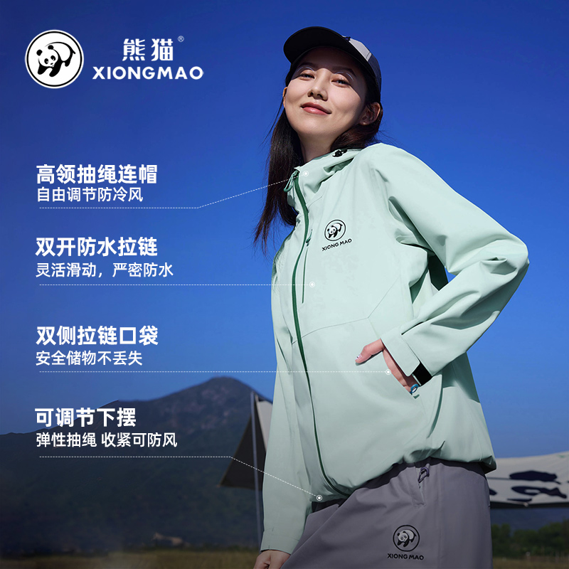【蔡徐坤同款】雨壳LT熊猫冲锋衣女外套2025新款春夏硬壳登山服