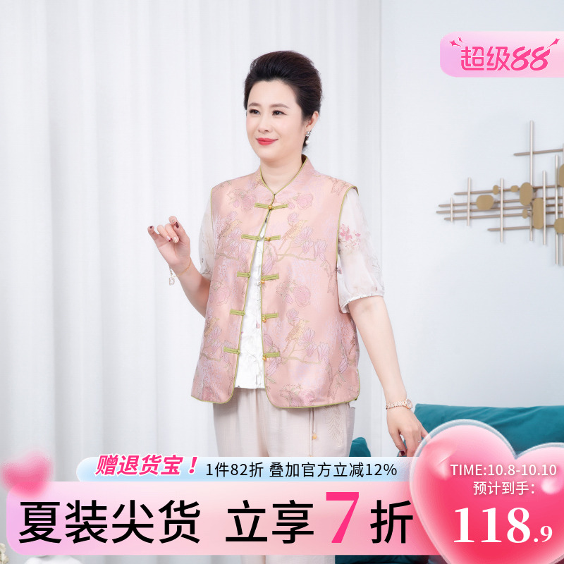 依佈中老年女装新中式马甲2025秋季新款防风背心国风妈妈大码上衣