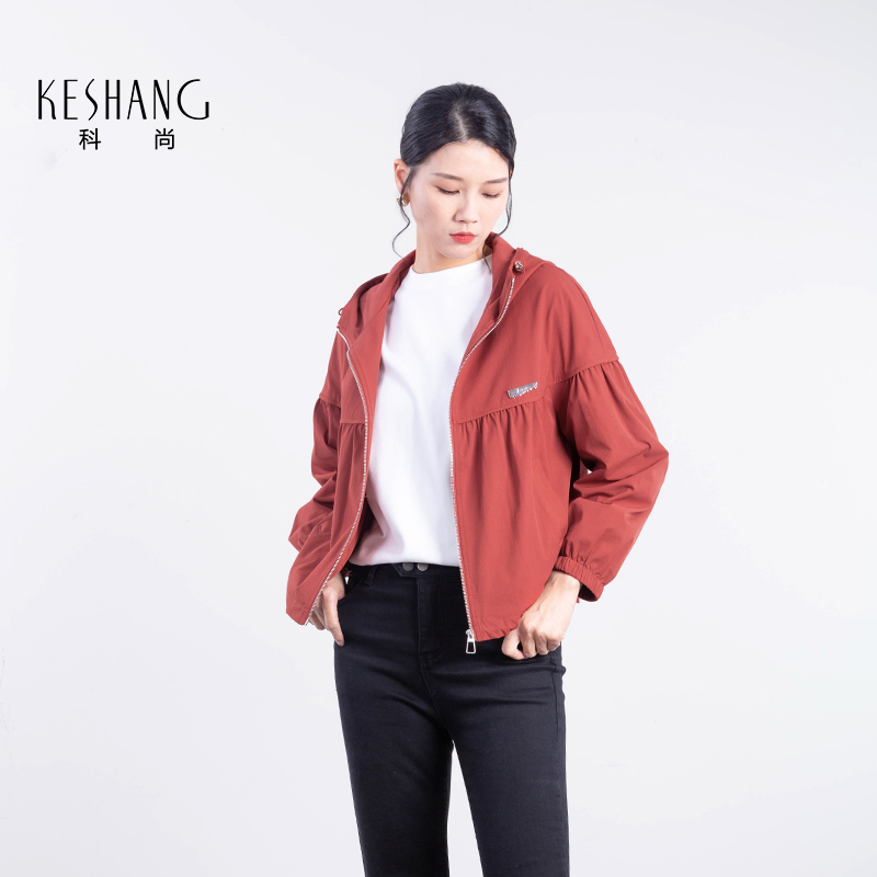 科尚休闲短款连帽外套女2025年春季新款韩版宽松大码纯色显瘦夹克