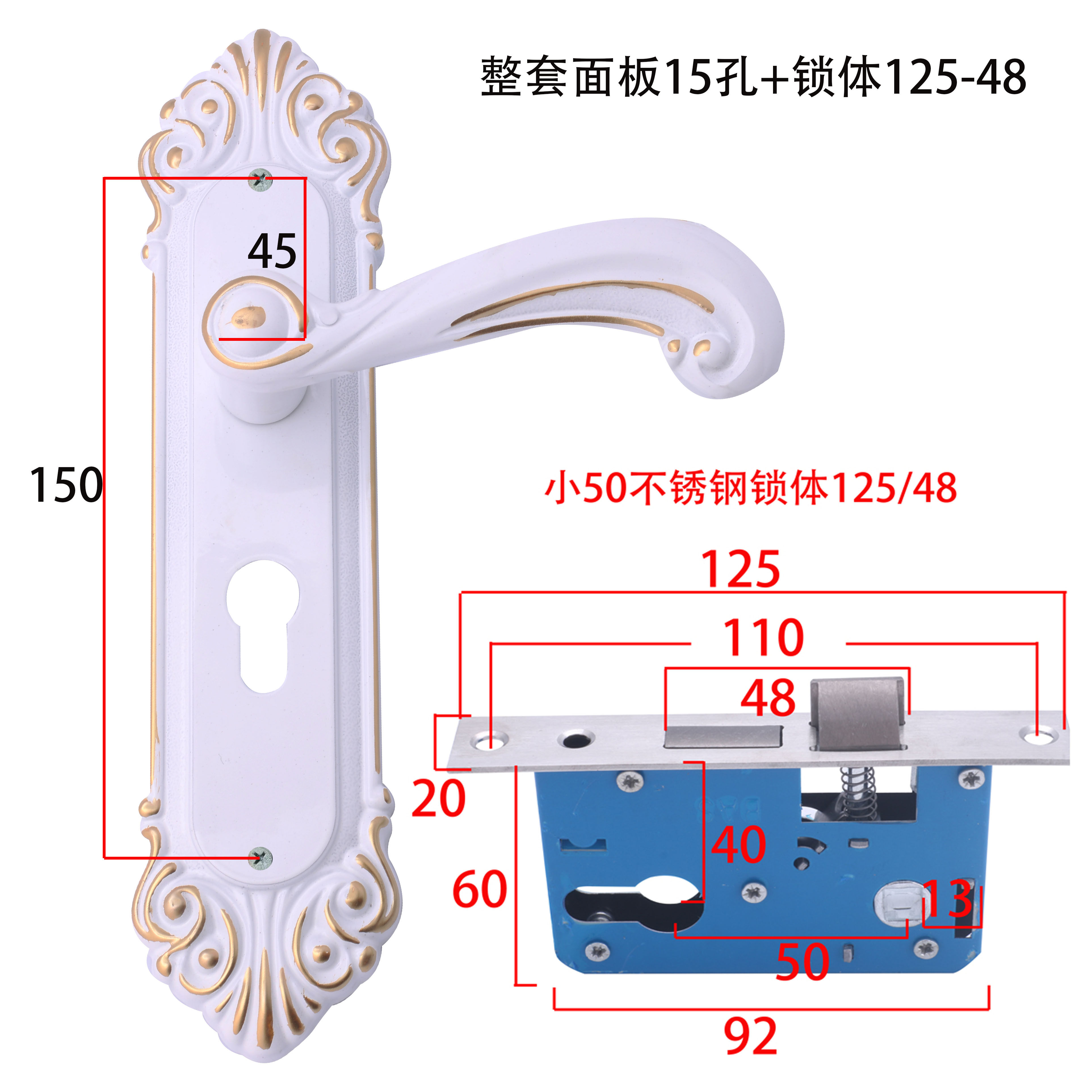 白色锁室内卧室房门锁实木门执手锁家用老式门锁欧式锁具150孔距