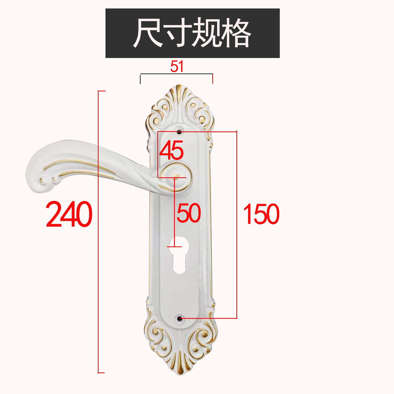 白色欧式房门锁150孔执手锁