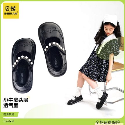 贝然童鞋儿童皮鞋女童真皮黑色公主鞋透气软底软皮防滑女宝宝单鞋