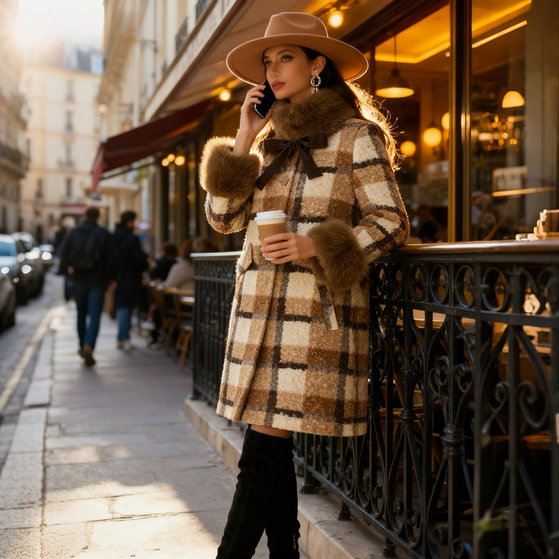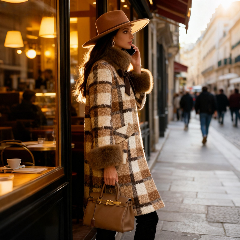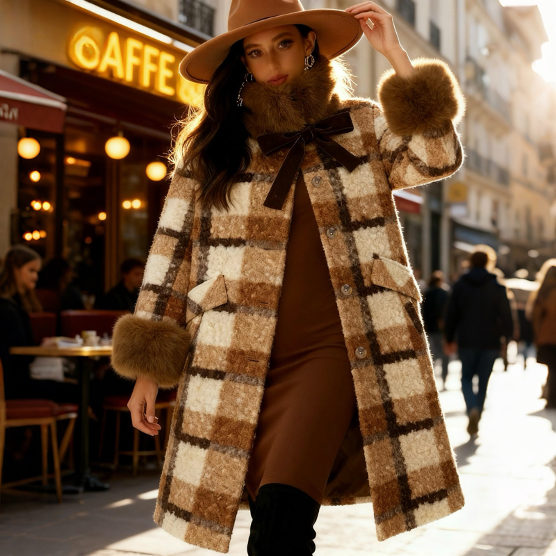 粉红大布娃娃大毛领仿羊羔毛大衣加厚外套女士秋冬季2025秋冬新款