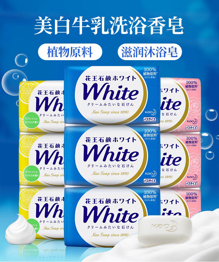 日本进口原装花王沐浴皂植物洗澡洁面香皂泡沫清洁天然玫瑰牛奶香