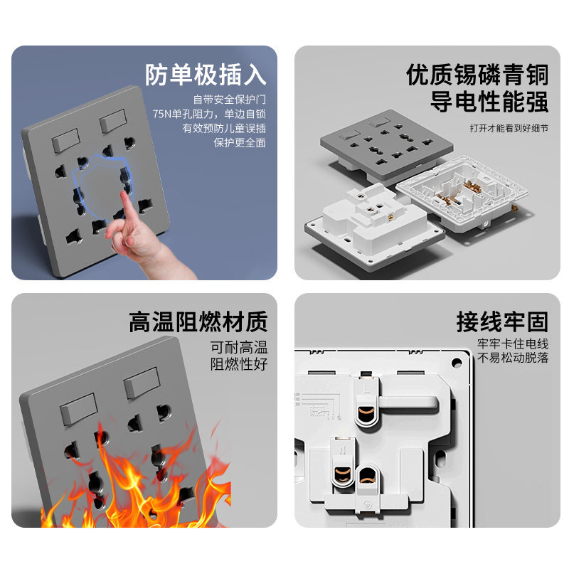 86型多功能家用两开十孔插座