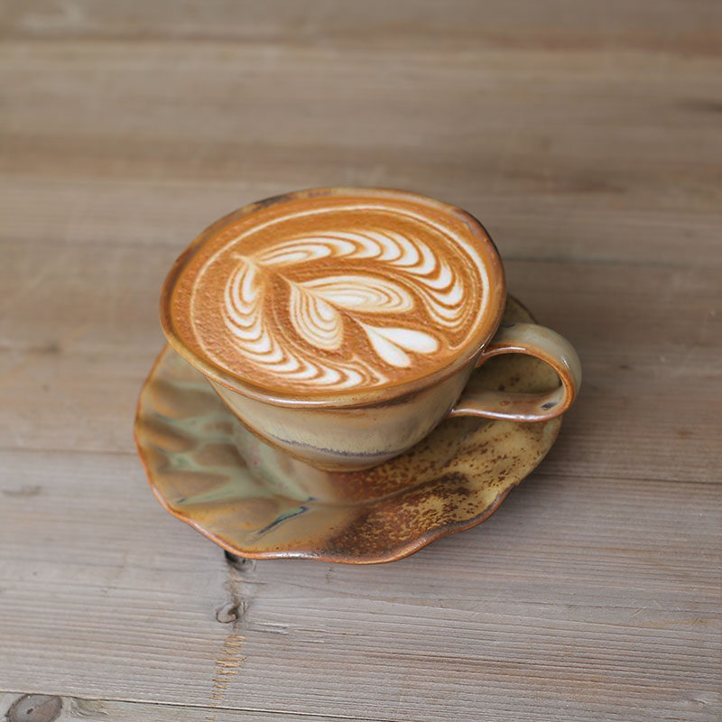 景德镇柴烧咖啡杯手工陶瓷带碟