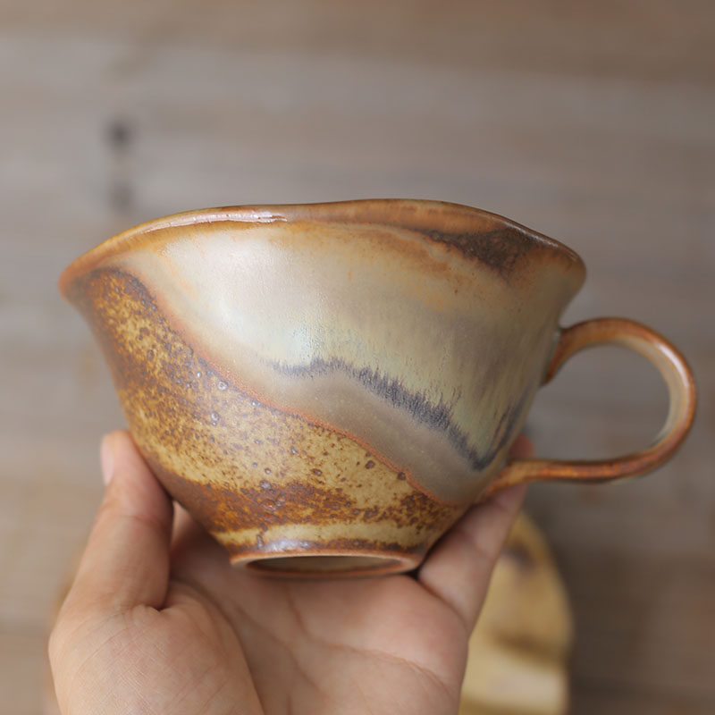 景德镇柴烧咖啡杯手工陶瓷带碟下午茶家用拿铁水杯马克杯生日礼品