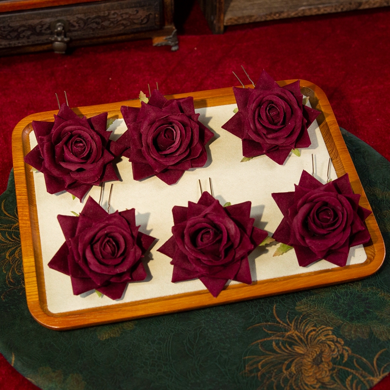水舞C0715 仿真酒红色玫瑰花龙凤褂新娘头饰敬酒服发饰发簪配饰