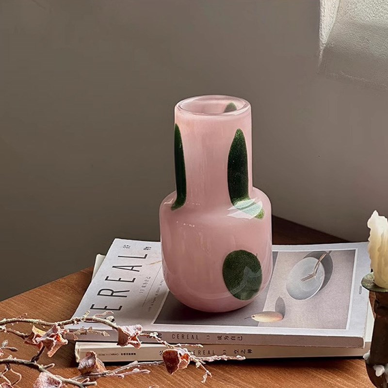 花瓶中古玻璃摆件复古创意水培小花器法式餐桌精致客厅插花装饰品
