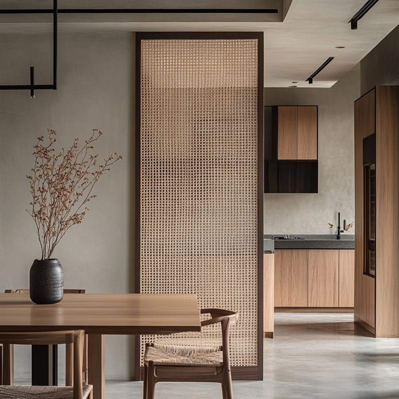 新中式实木藤编屏风隔断客厅家用酒店办公室入户玄关折叠移动座屏