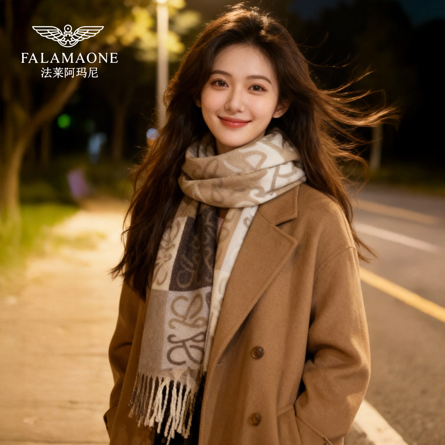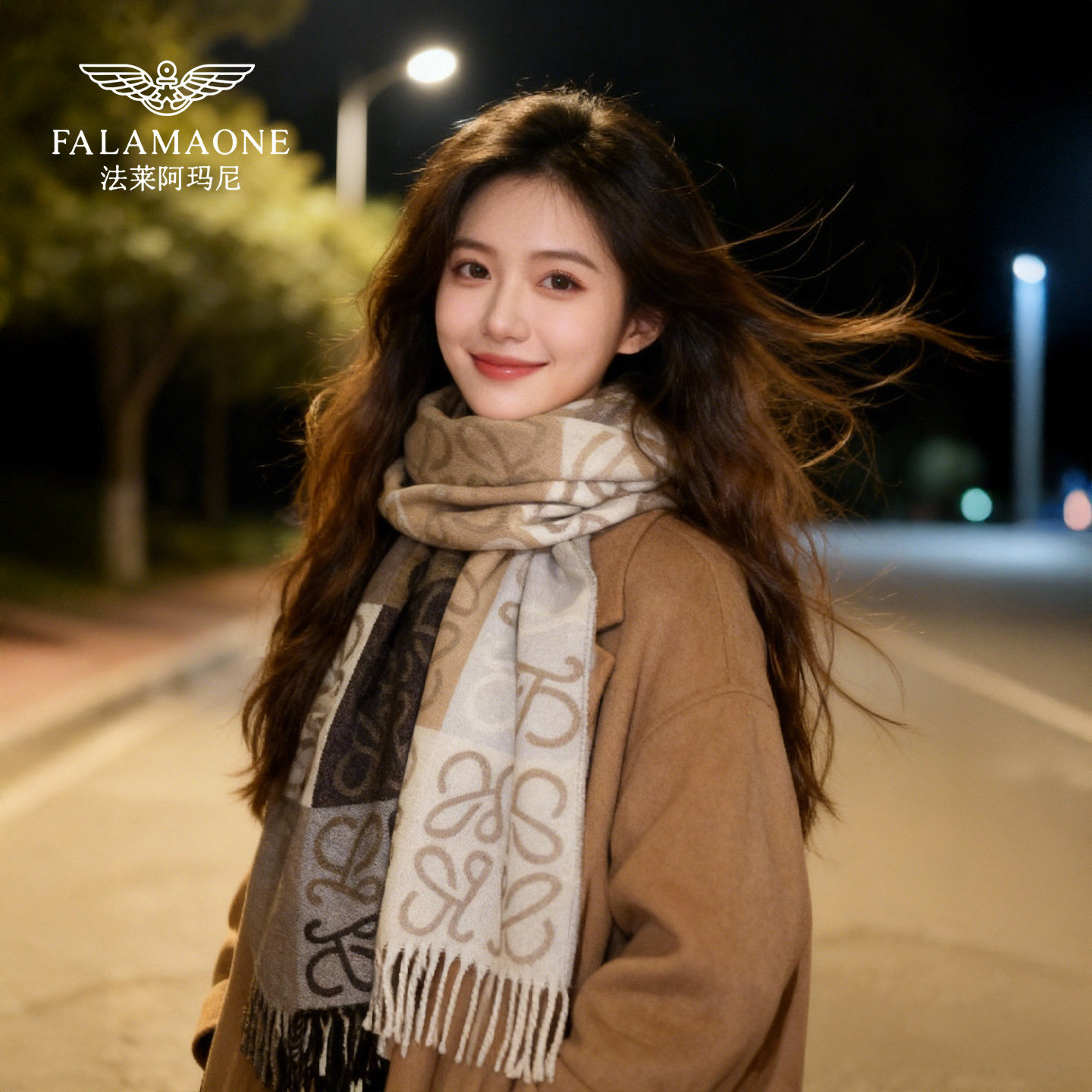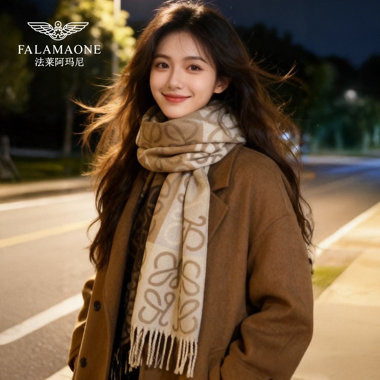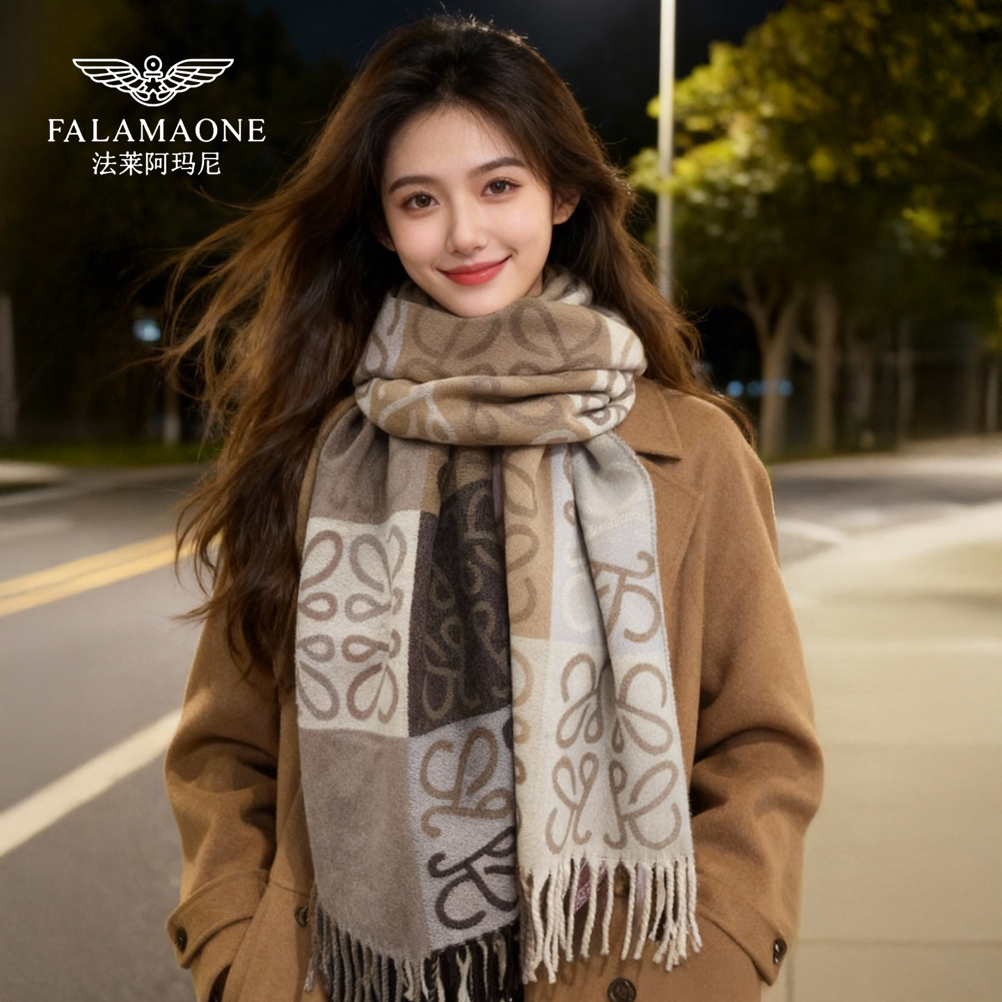 法莱阿玛尼围巾女款2025新款冬季高级感提花围脖加厚保暖韩系披肩