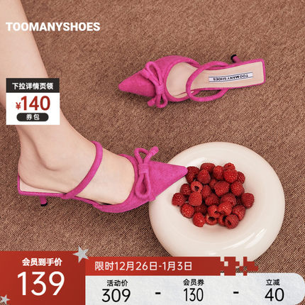[明星同款]Toomanyshoes开运桃花多巴胺尖头高跟包头凉拖鞋女外穿