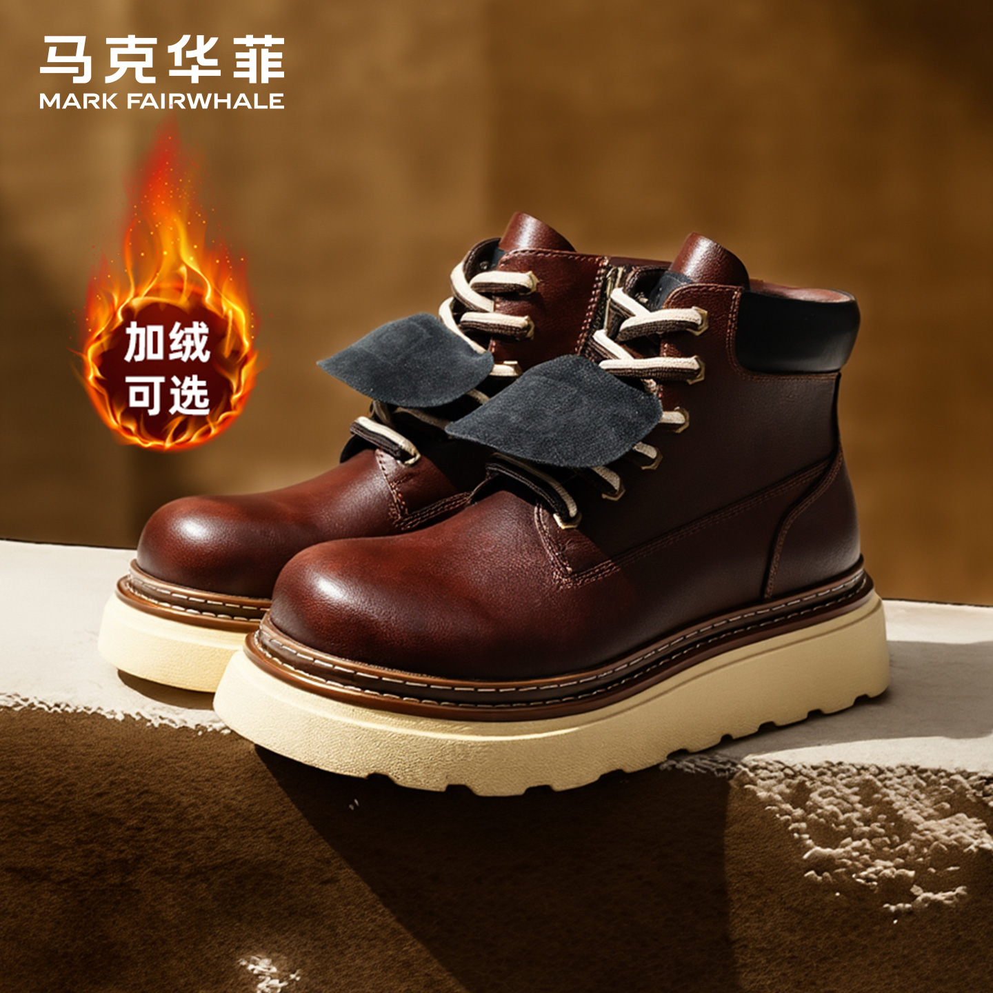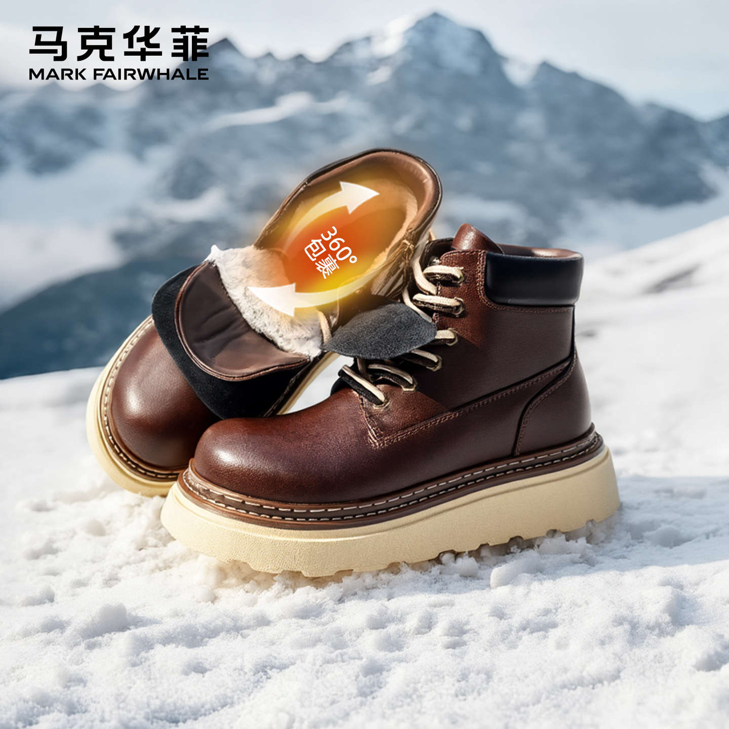 马克华菲马丁靴男款冬季加厚保暖棉鞋男士真皮工装靴男鞋雪地靴男