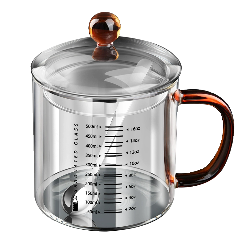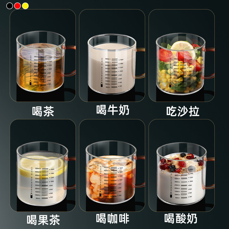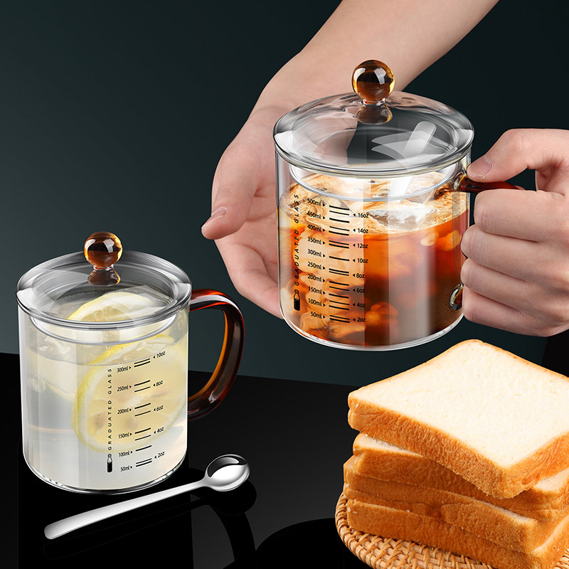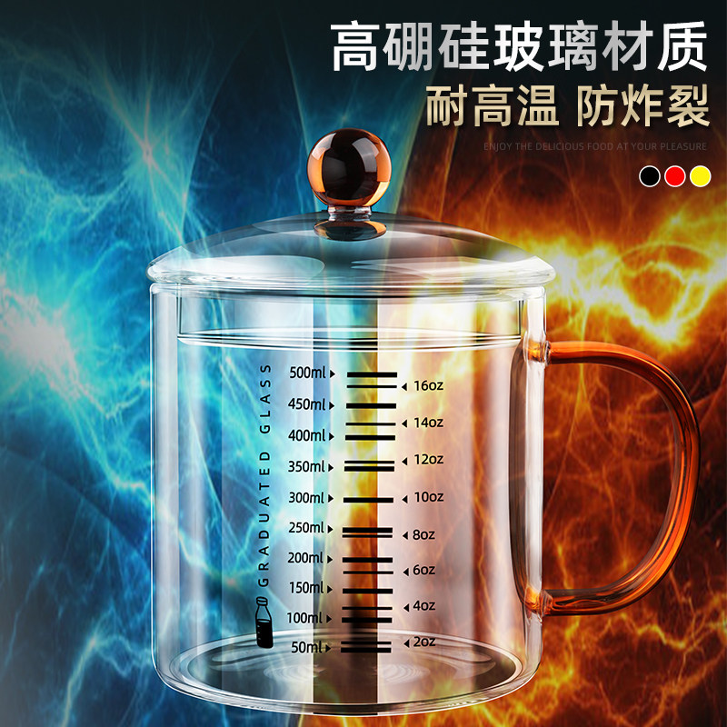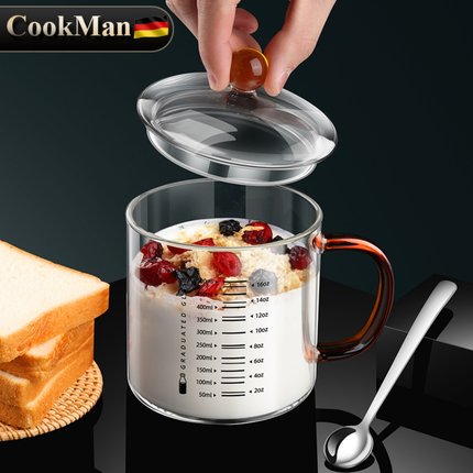 玻璃牛奶杯带刻度家用早餐燕麦杯子带盖微波炉可加热学生喝奶水杯