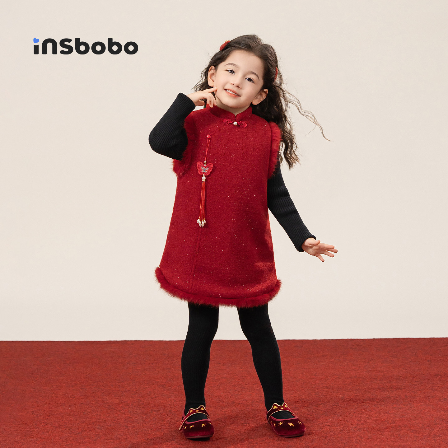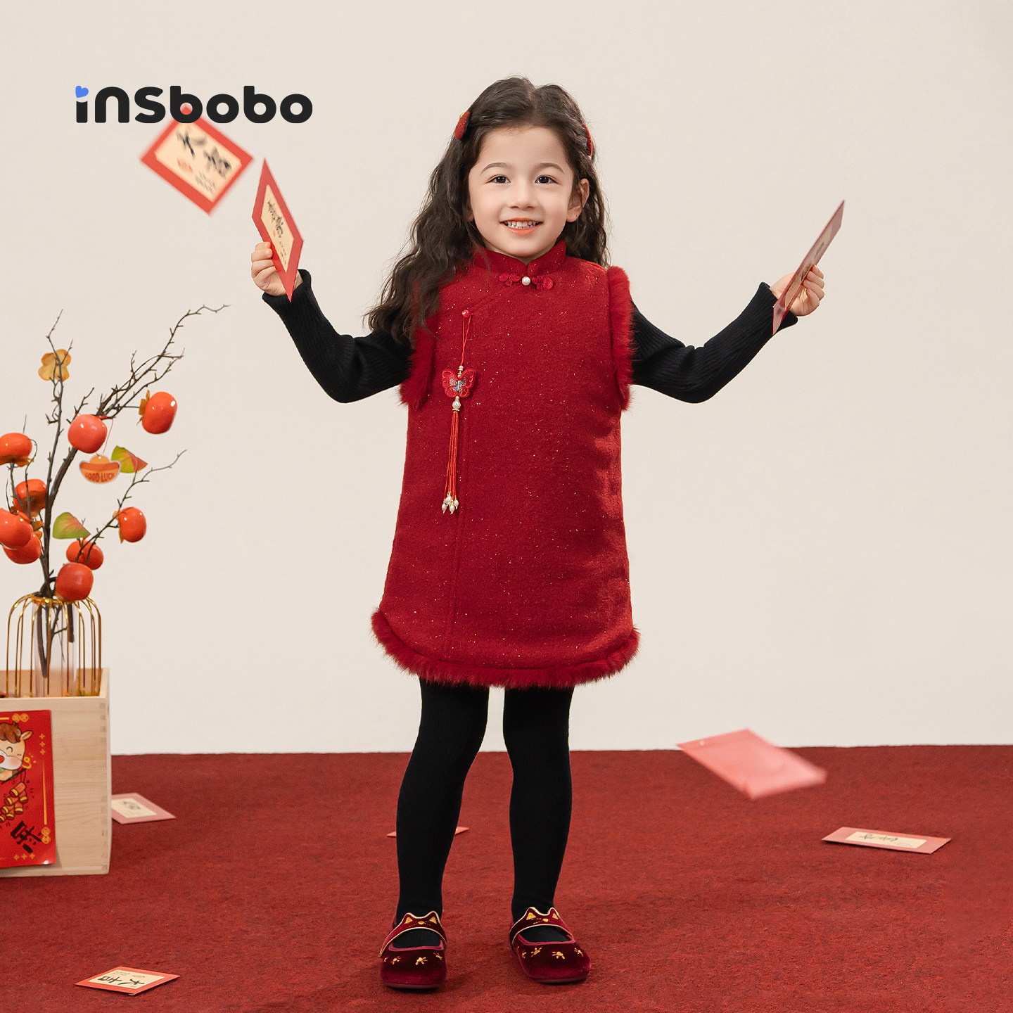 女童红色连衣裙宝宝周岁礼服拜年服新中式冬装衣服儿童旗袍裙子冬