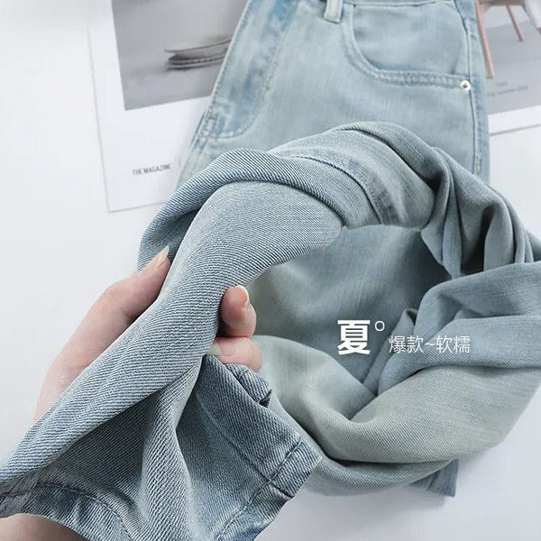 夏季薄款天丝阔腿牛仔裤女2025