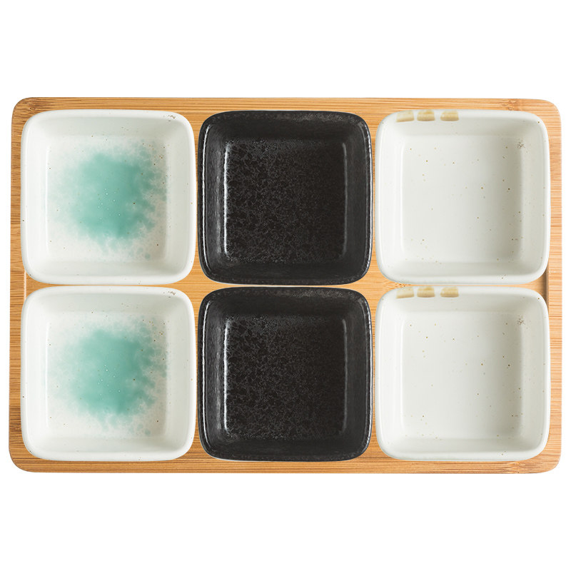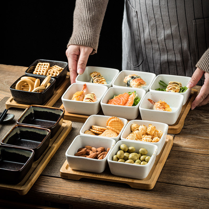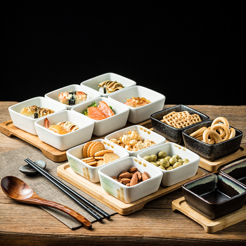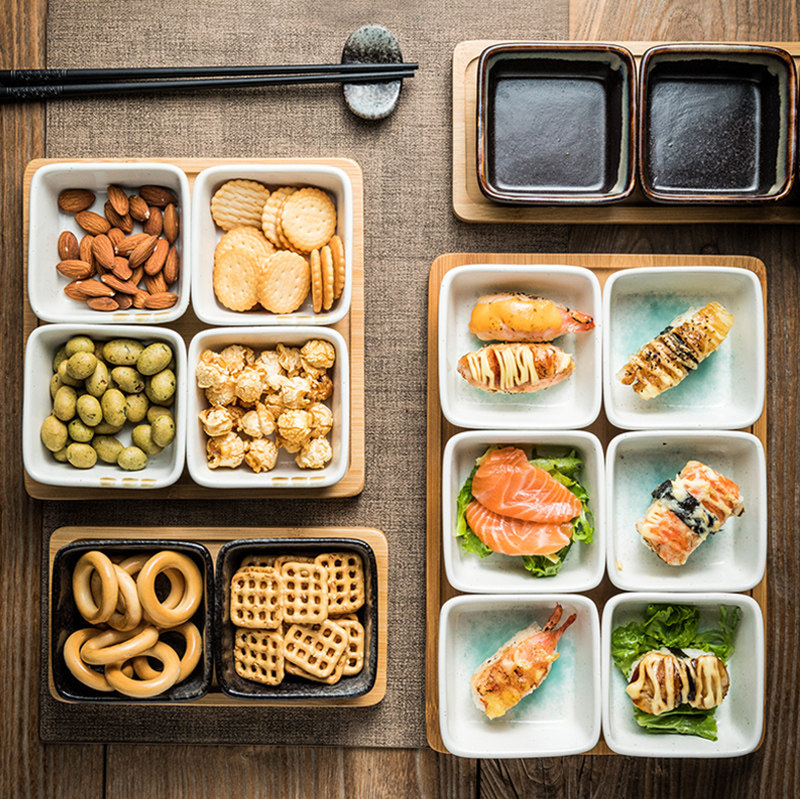 分格干果盘点心分隔拼盘陶瓷小吃碟客厅家用零食坚果茶点竹木托盘