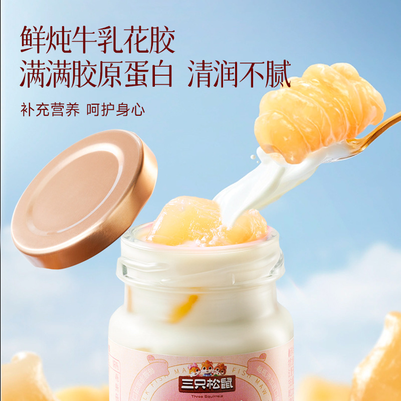 【三只松鼠_鲜炖牛奶花胶礼盒75g*10】红枣桃胶花胶牛奶燕窝银耳