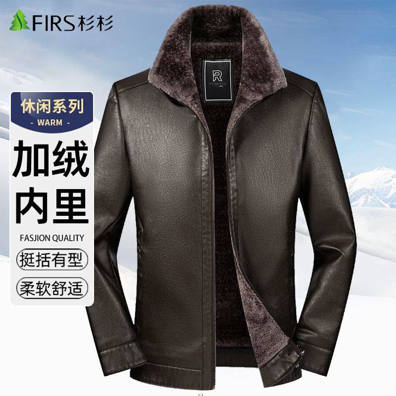 杉杉皮毛一体皮衣加绒加厚冬季2025新款保暖上衣中年男士爸爸冬装