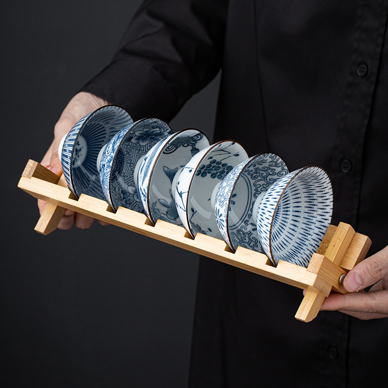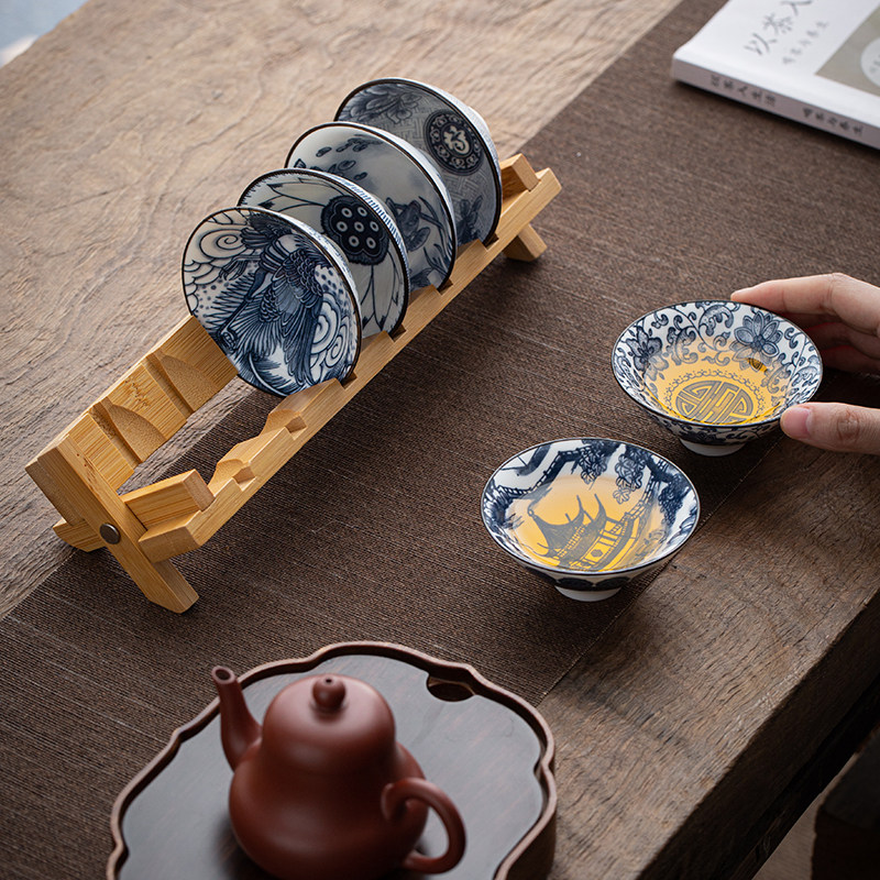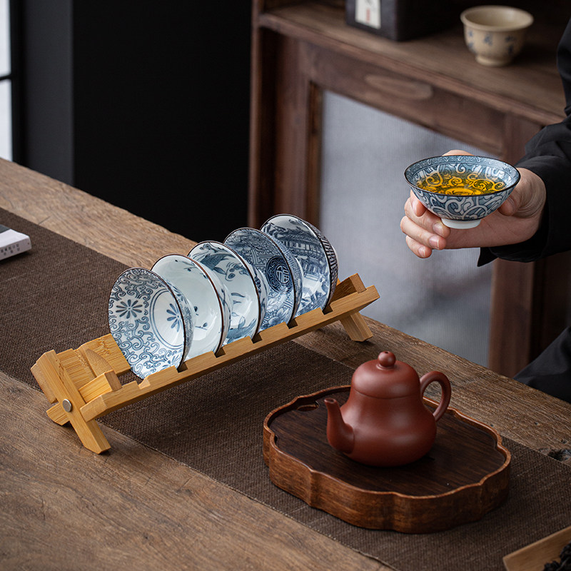 青花斗笠杯茶杯含杯架礼盒送礼茶具陶瓷复古茶碗中式茶盏品茗杯