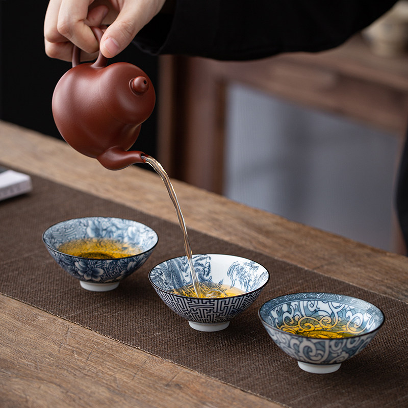 南玩复古青花瓷斗笠茶杯礼盒包装