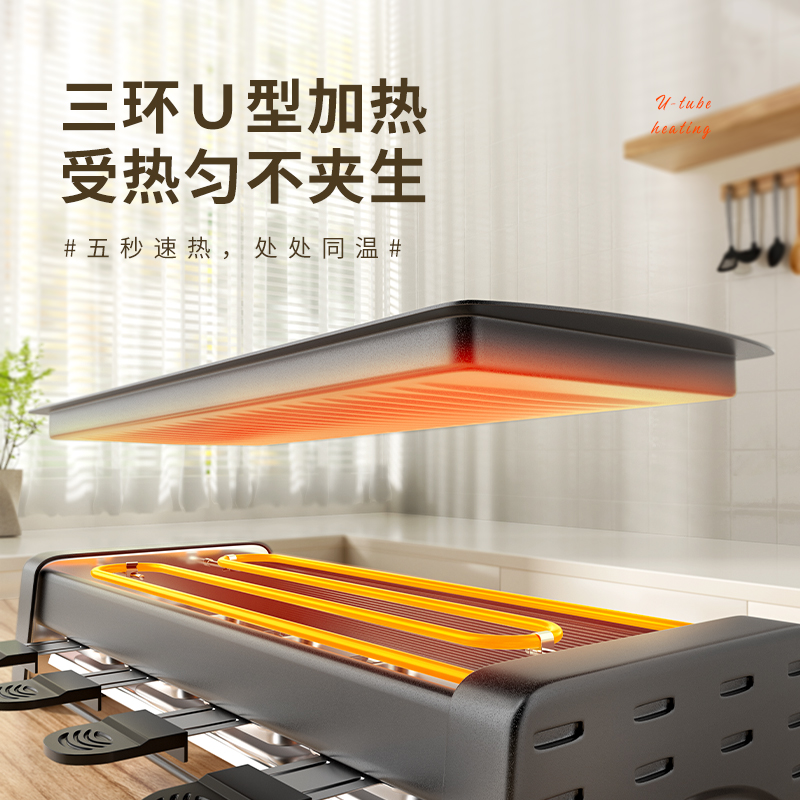 极速电烧烤炉烧i烤用具烧烤架家用电烤无烟烤肉炉室内烧烤串机架