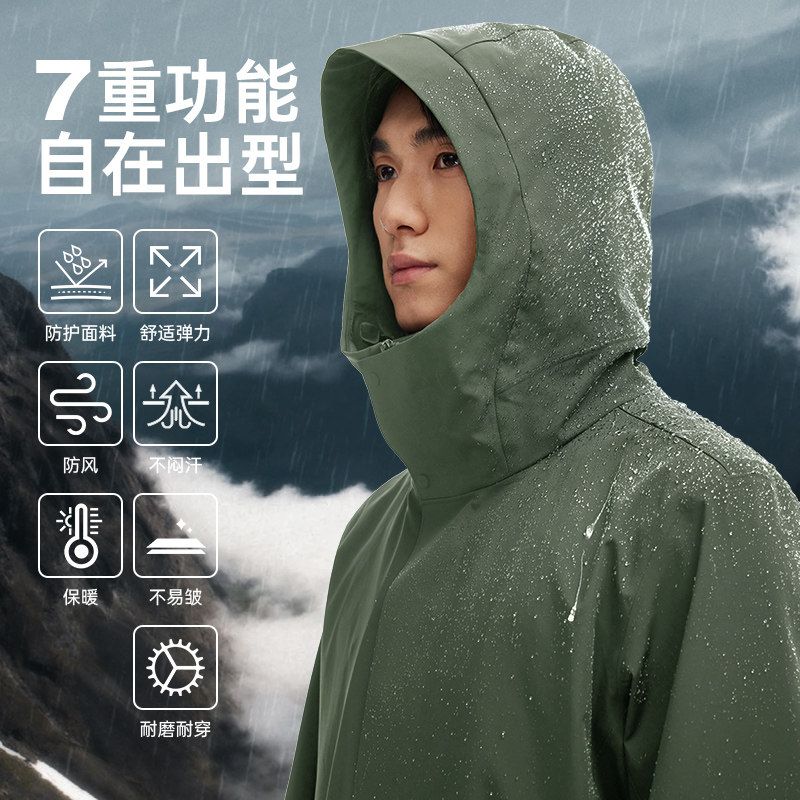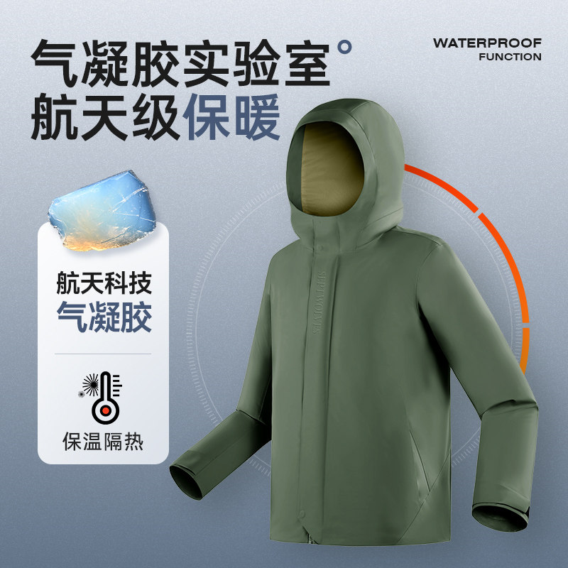 七匹狼三防夹克男2025秋冬新款男士连帽充气颈枕旅行防水冲锋外套