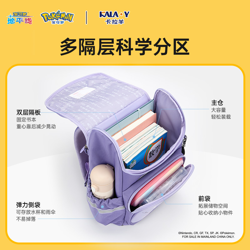 【宝可梦联名】卡拉羊1-4-6年级小学生书包减负护脊大嘴书包3.0超轻大容量一年级男孩女生可爱儿童背包正品